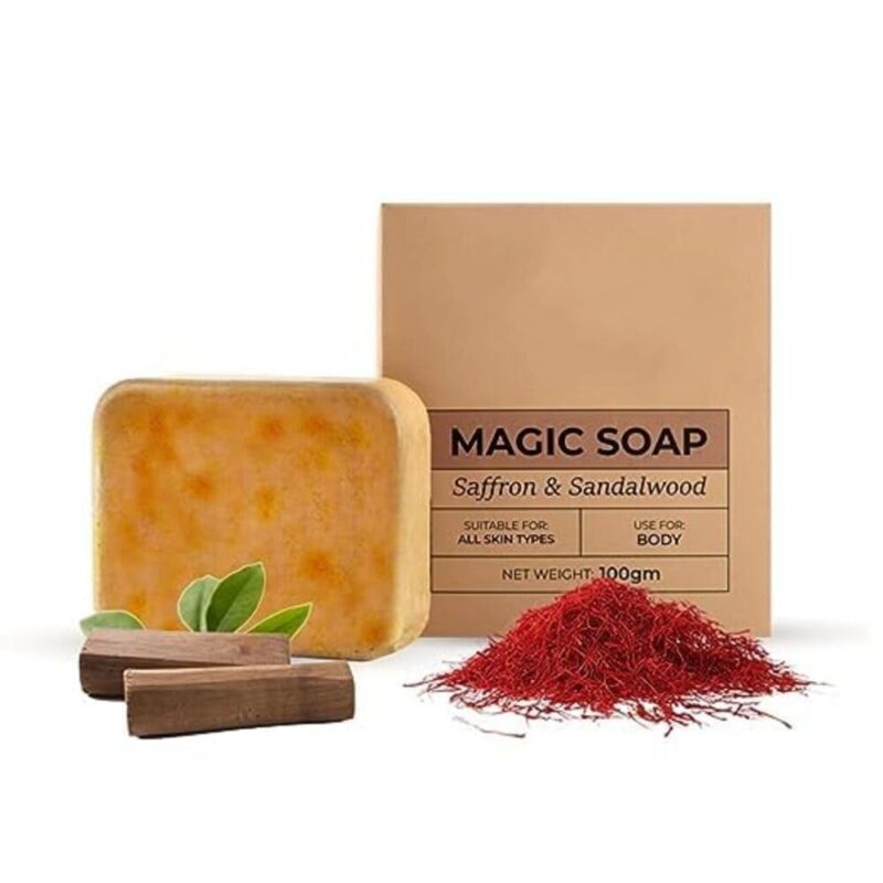 Sandalwood & Saffron Magic Soaps For Bath (300 Gms Pack Of 3) | Paraben Free | Chandan & Kesar Bath Soap | Handmade Soaps For Glowing | Skin Brightening Soap For Men & Women Pack 3