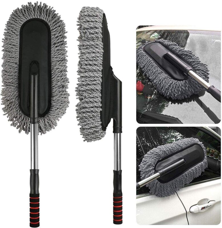 Microfiber Car Cleaning Duster Flexible Car Brush Wash Dust Wax Mop with Telescoping Extendable Handle Car Washing Brush Multipurpose Car Cleaning Brush Duster
