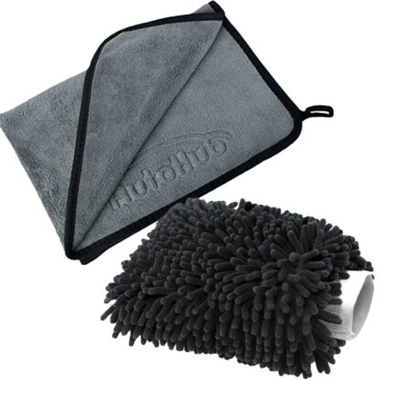 Auto Hub Microfiber Car Cleaning Cloth and Wash Mitt Kit – Includes Super Soft 600 GSM Extra Large (40×60 CM) Microfiber Cloth for Car and Dual Sided Chenille Microfiber Wash Mitt 1700 GSM