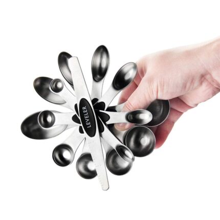 LLS Magnetic Measuring Spoons Double Head, Stainless Steel Measure Spoons with Silicone Handle Kitchen Aid Pasta 0512