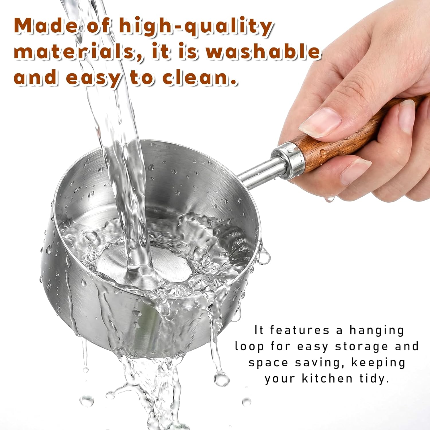 【Comfortable Non-Slip Wooden Handle】The solid wood handle is meticulously polished for a comfortable grip and a non-slip surface. It also features a hanging hole for wall mounting, saving space