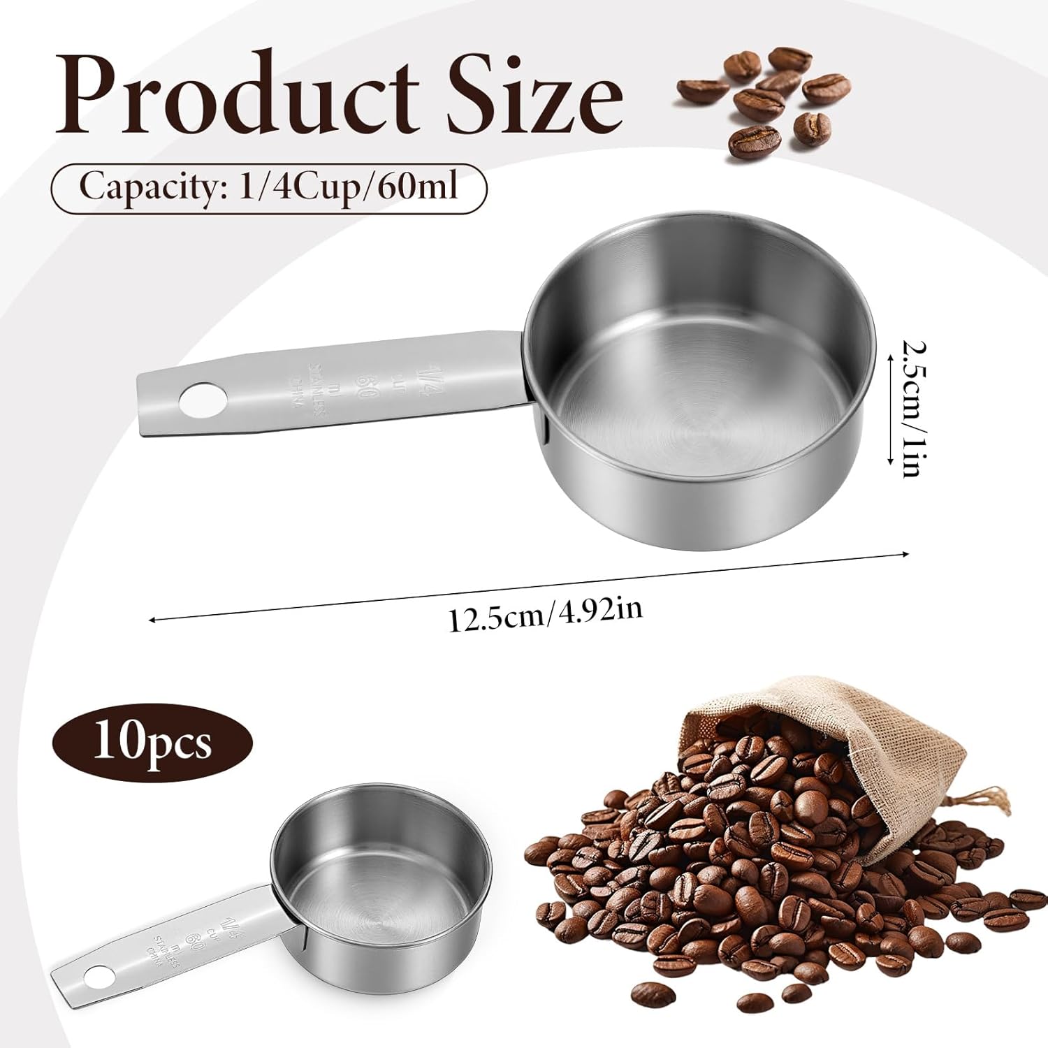 Premium Stainless Steel Construction: Crafted from food-grade 304 stainless steel, these 1/4 cup measuring cup resist rust, corrosion, and warping for long-lasting durability in demanding kitchen environments; smooth surface simplifies cleaning without residue buildup
