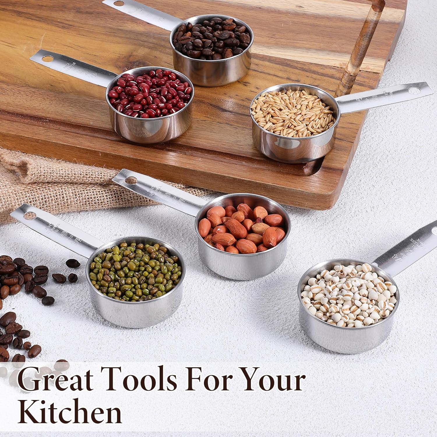 Permanent Measurement Markings: Laser-etched metric (ml) and US standard (tsp/tbsp) units on handles of stainless steel measuring cup resist fading, guaranteeing lifetime accuracy for baking ingredients, medication doses, and liquid extracts with error-free results