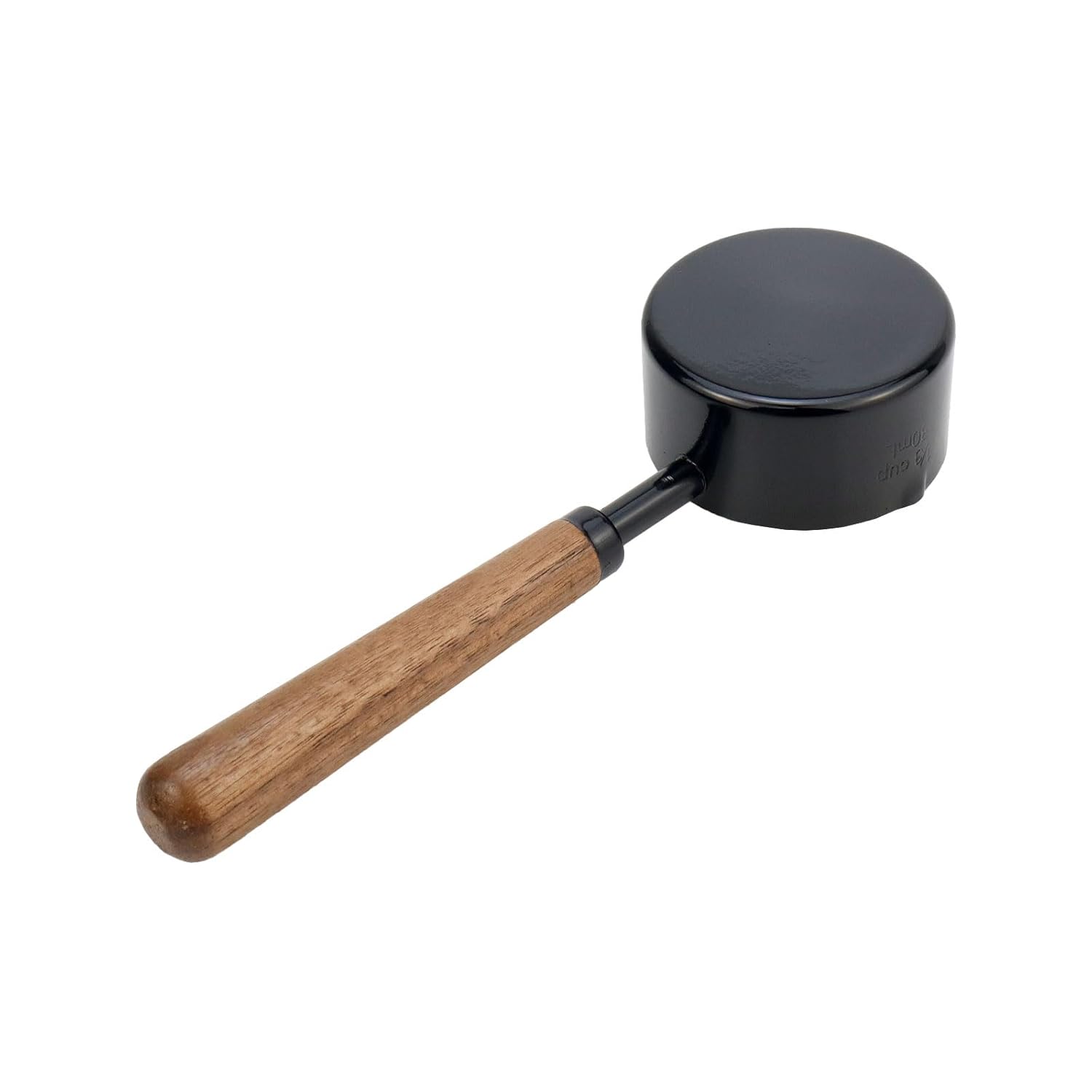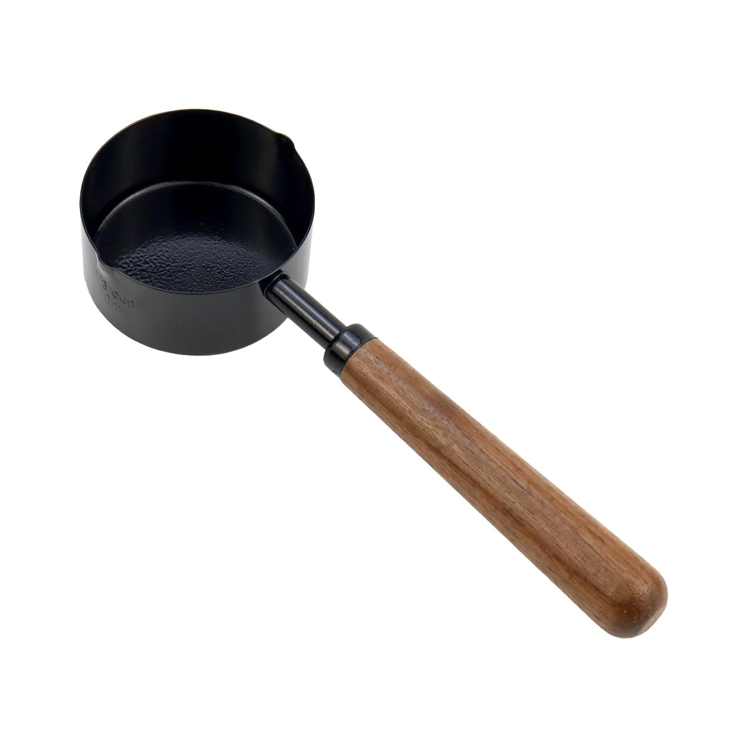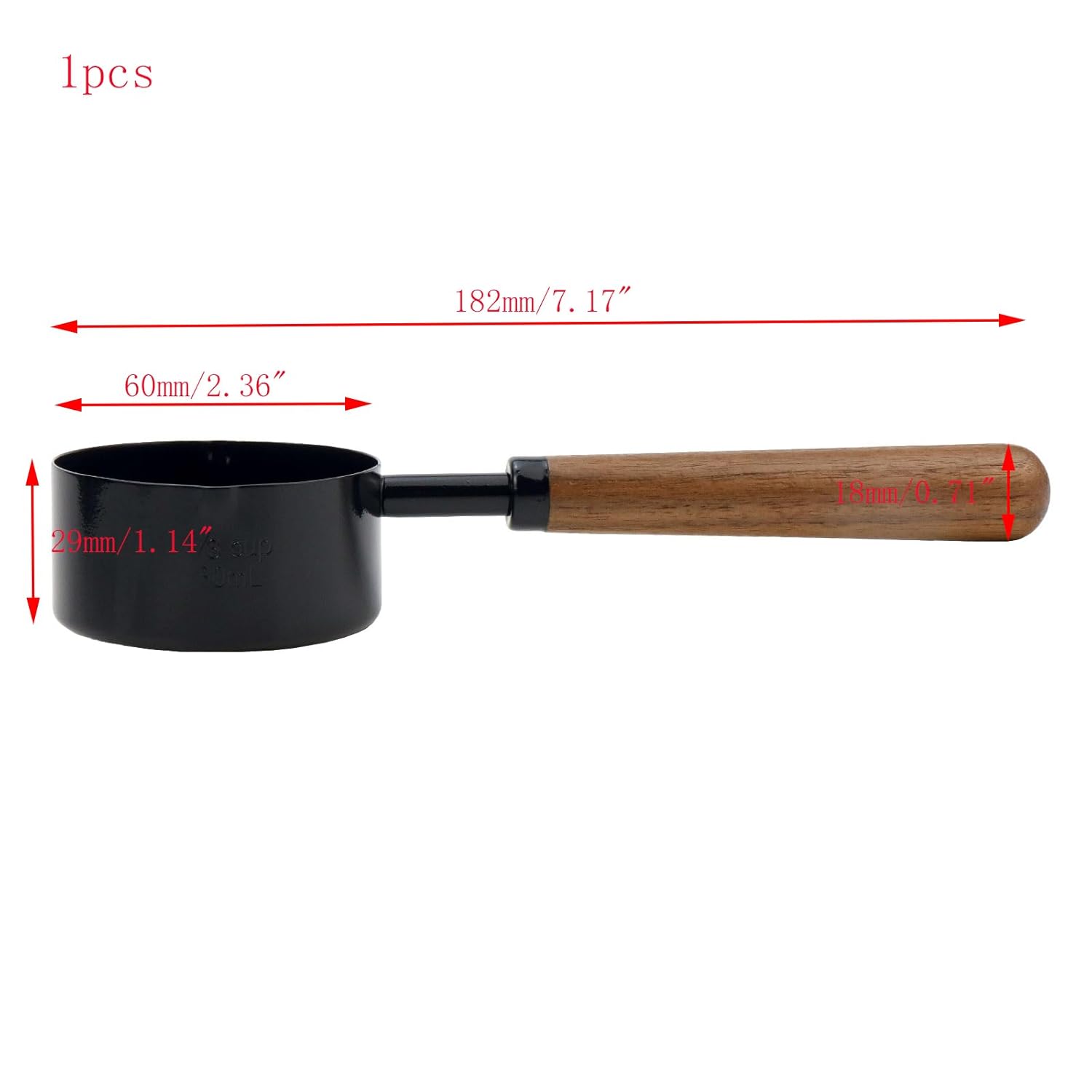 -Design: The black metal measuring cup with a wooden handle have a smooth surface and a comfortable grip. The cup also have a clear measurement scale, which is very convenient for your cooking and baking.