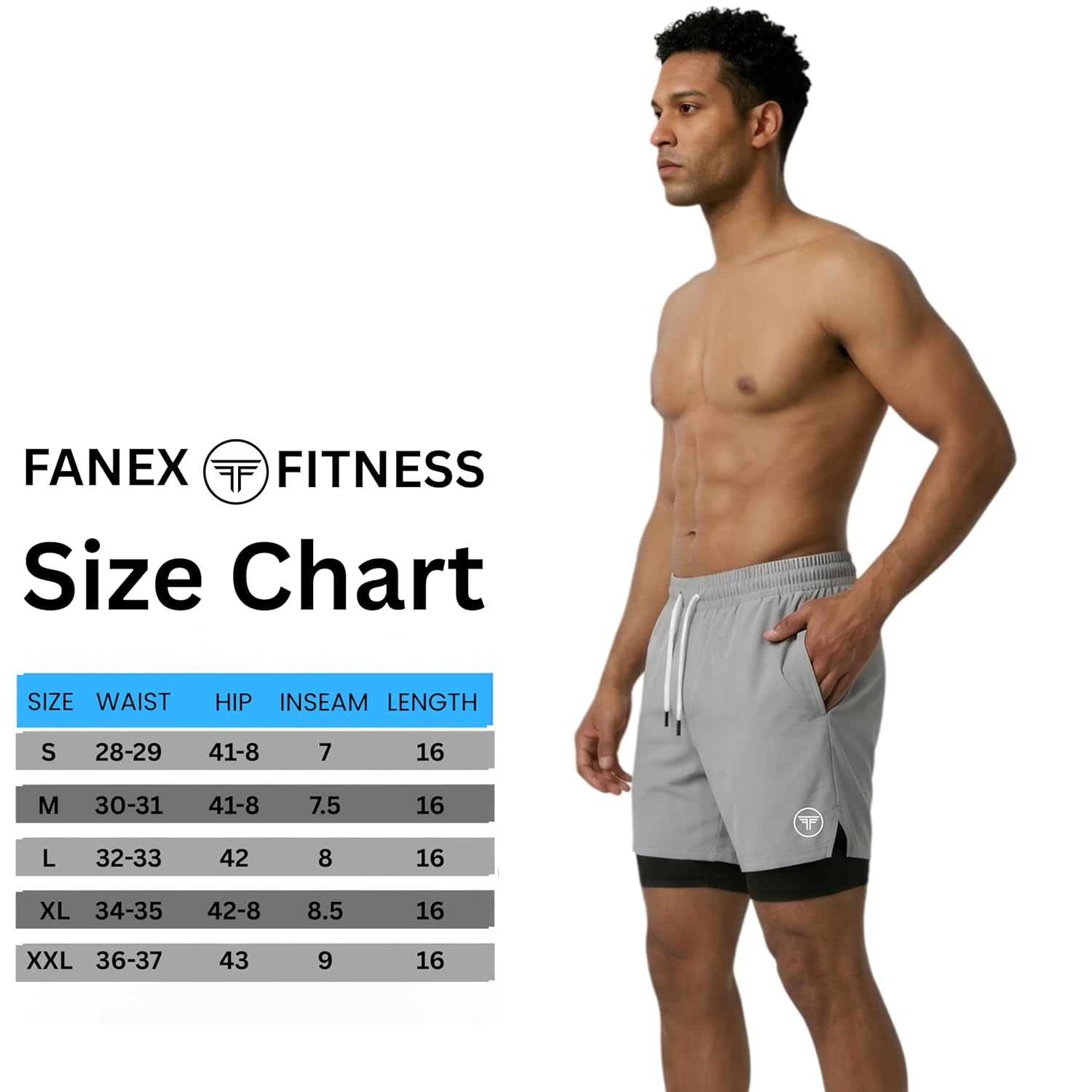 Introducing the FANEX FITNESS PVT LTD 2-in-1 Dual Layer Shorts for Men, a revolutionary fusion of style, functionality, and performance. Engineered to meet the demands of modern athletes and active individuals, these shorts offer a versatile solution for all your fitness and lifestyle needs. At the heart of the FANEX FITNESS PVT LTD shorts is their innovative dual-layer design, seamlessly combining the benefits of compression shorts with the classic look and feel of traditional athletic shorts. This unique construction provides the best of both worlds, delivering targeted support to key muscle groups while allowing for maximum freedom of movement. Whether you’re hitting the gym, going for a run, or simply running errands around town, these shorts offer unparalleled comfort and performance. Crafted from high-performance moisture-wicking compression fabric, these shorts are designed to keep you cool and dry, even during the most intense workouts. The advanced moisture-wicking technology quickly draws sweat away from your skin, allowing it to evaporate quickly and leaving you feeling fresh and comfortable throughout your training session. Say goodbye to discomfort and distractions— with the FANEX FITNESS PVT LTD shorts, you can stay focused on reaching your fitness goals without worrying about sweat-soaked clothing. The FANEX FITNESS PVT LTD shorts are also designed with convenience and practicality in mind. An adjustable waistband with a drawstring closure allows for a personalized fit, ensuring maximum comfort and support during every workout. Available in a range of 5 stylish colors, the FANEX FITNESS PVT LTD 2-in-1 Dual Layer Shorts for Men allow you to express your personal style while staying on top of your game. Whether you prefer a classic look or something more bold and vibrant, there’s a color option to suit every taste and preference. Elevate your training sessions with these Men’s 2-in-1 Running Shorts, designed to deliver both comfort and performance during intense gym workouts and outdoor runs. The clever 2-in-1 construction features an outer shell paired with a built-in inner layer, providing excellent support and coverage so you can move with complete confidence. The elastic waistband with an adjustable drawstring ensures a secure, personalised fit for all body types. Conveniently designed side pockets let you carry your smartphone or essentials without any hassle, keeping your hands free during workouts. Available in classic black as well as other colour options, these versatile shorts are suitable for running, gym training, cycling, and everyday casual wear. The lightweight fabric allows for unrestricted movement and helps keep you cool and comfortable throughout your workout. Whether you are hitting the treadmill, lifting weights, or heading out for a morning jog, these shorts are the ideal companion for an active lifestyle. Please refer to the size chart before placing your order to ensure the perfect fit.