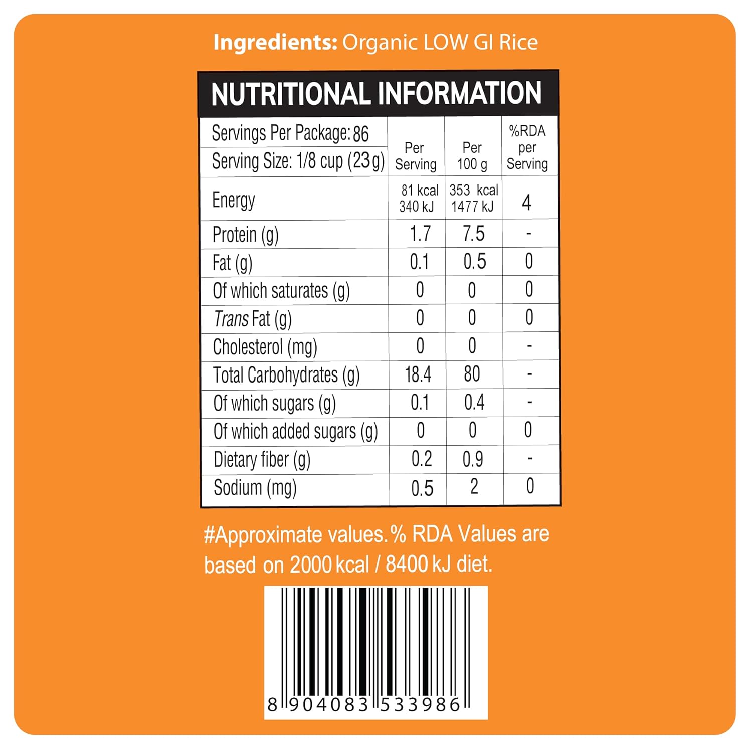 Low GI rice value measure how much sugar specific foods release. Low GI product ensure slower breakdown of Carbohydrates which help us stay full for longer durations.