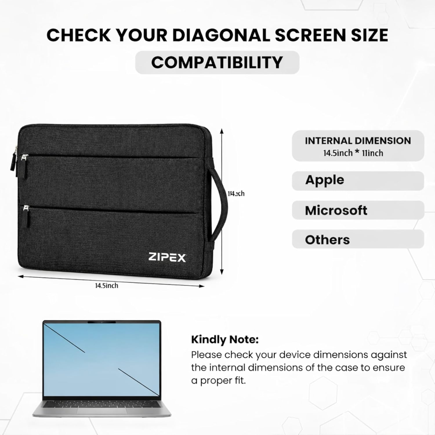 ZIPEX laptop sleeve features water-resistant fabric and reinforced corner padding to protect your laptop from spills, drops, and everyday impact damage.