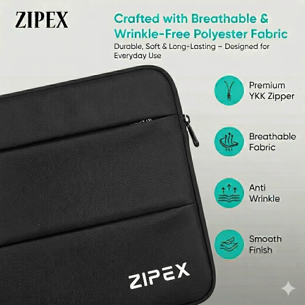 ZIPEX laptop sleeve offers premium shock protection, organized accessory storage pockets, and durable water-resistant build designed for everyday office, travel, and business use.