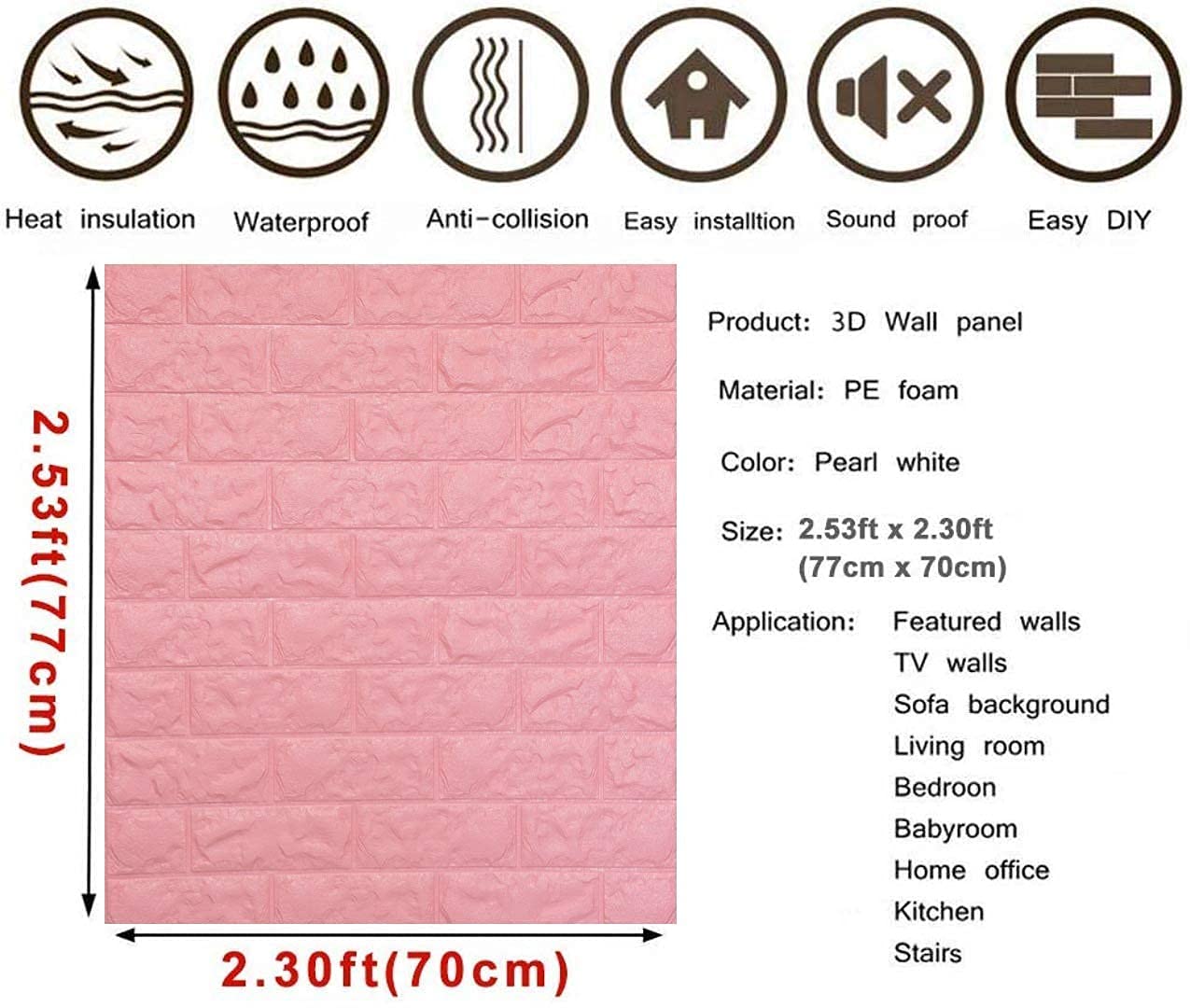 Protects your family with Made of soft pe foam Anti Children’s Collision. Sound-proof, damp-proof, and waterproof. With a moist towel, cleaning and maintenance are simple. Material for cheap wall coverings. The tiles are light, water resistant, and anti-collision, and the embossed 3D wall sticker gives Stunning Visual Impact. Without any mess or specialised tools, they may be mounted over a spotless surface in a matter of minutes, and they never break with time. You can easily cut the 3D wall stickers with our free trimmingkit to fit your corners or outlets. Peel and stick the adhesive 3D brick wallpaper to apply them on your wall. MADE OF SOFT PE FOAM. Anti Children’s Collision, takes care of your family. Waterproof, moist-proof and sound insulated. Easy to clean and maintenance with wet cloth. Economic wall covering material. WALL COVERING AREA: 5.27 sq.ft. per sheet Usage range: Featured walls, Kitchen, Bedroom, Living room, Dinning room, TV walls, Sofa background, Office wall decoration, etc. Don’t use in shower and rugged wall surface. “