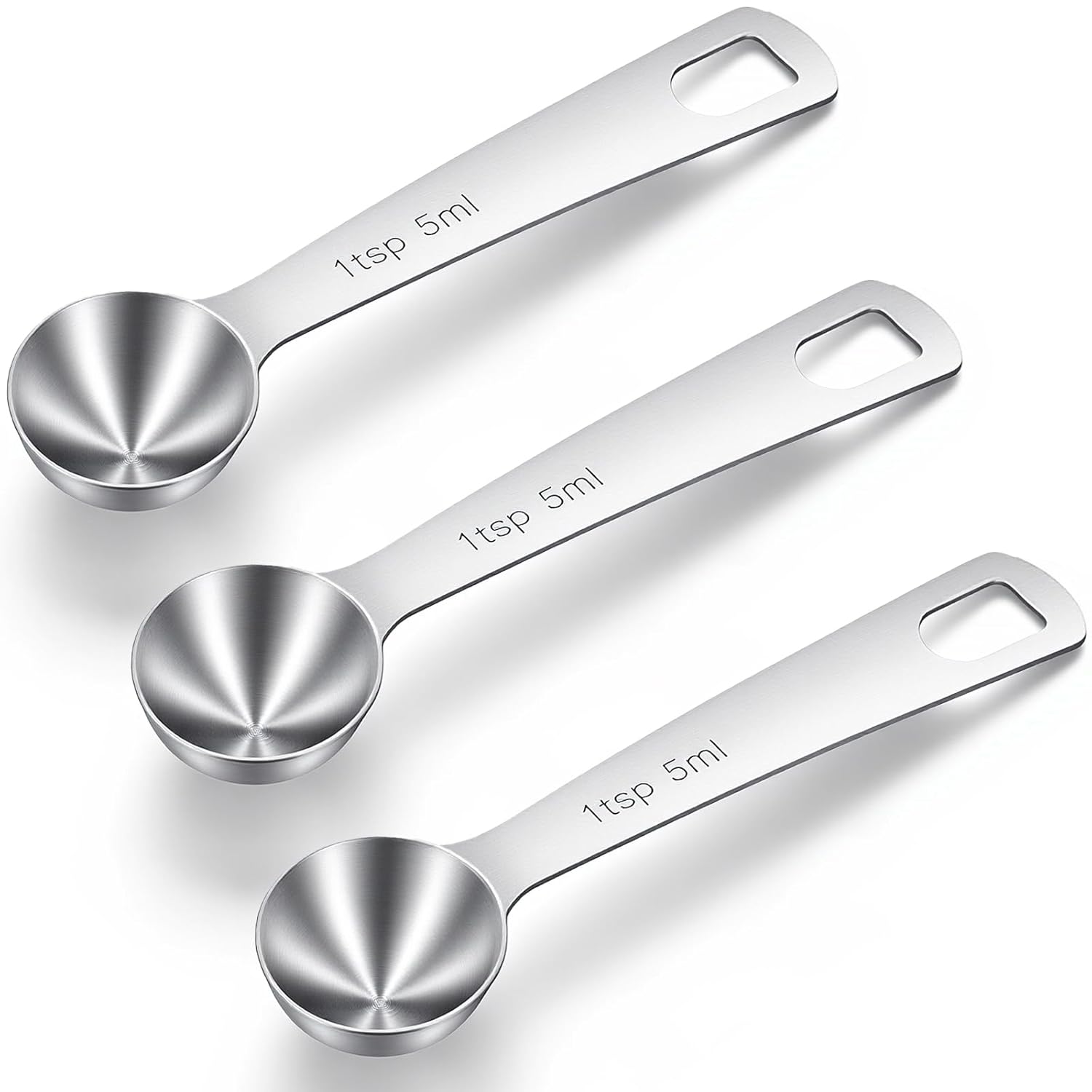 Home Accessories 3Pcs Stainless Steel Measuring Spoons Set 1 Teaspoon 5ml for Precise Cooking Baking and Spice Measurement Short Handle Design for Easy Use in Kitchen Essential for Home Chefs and Baking