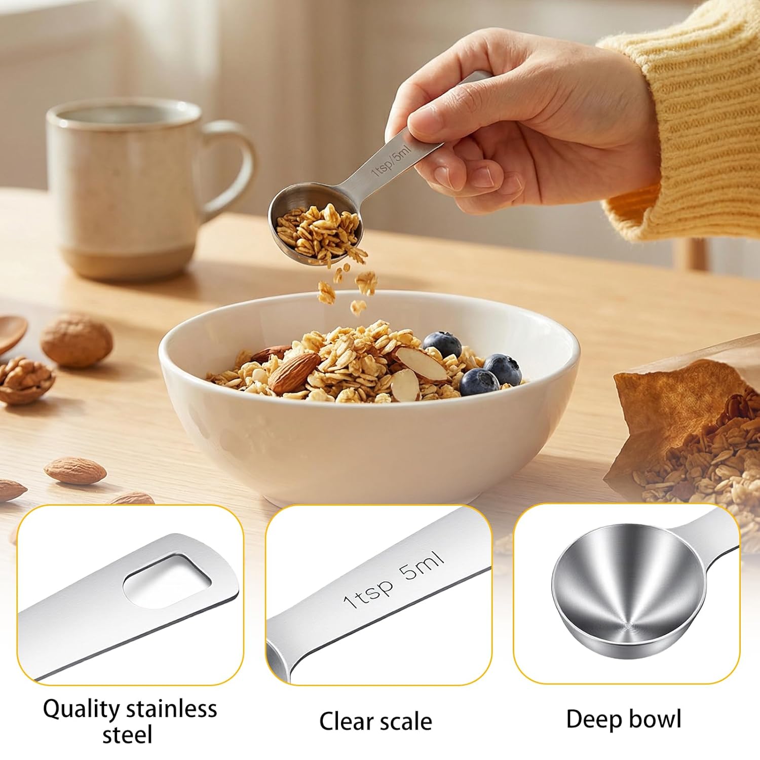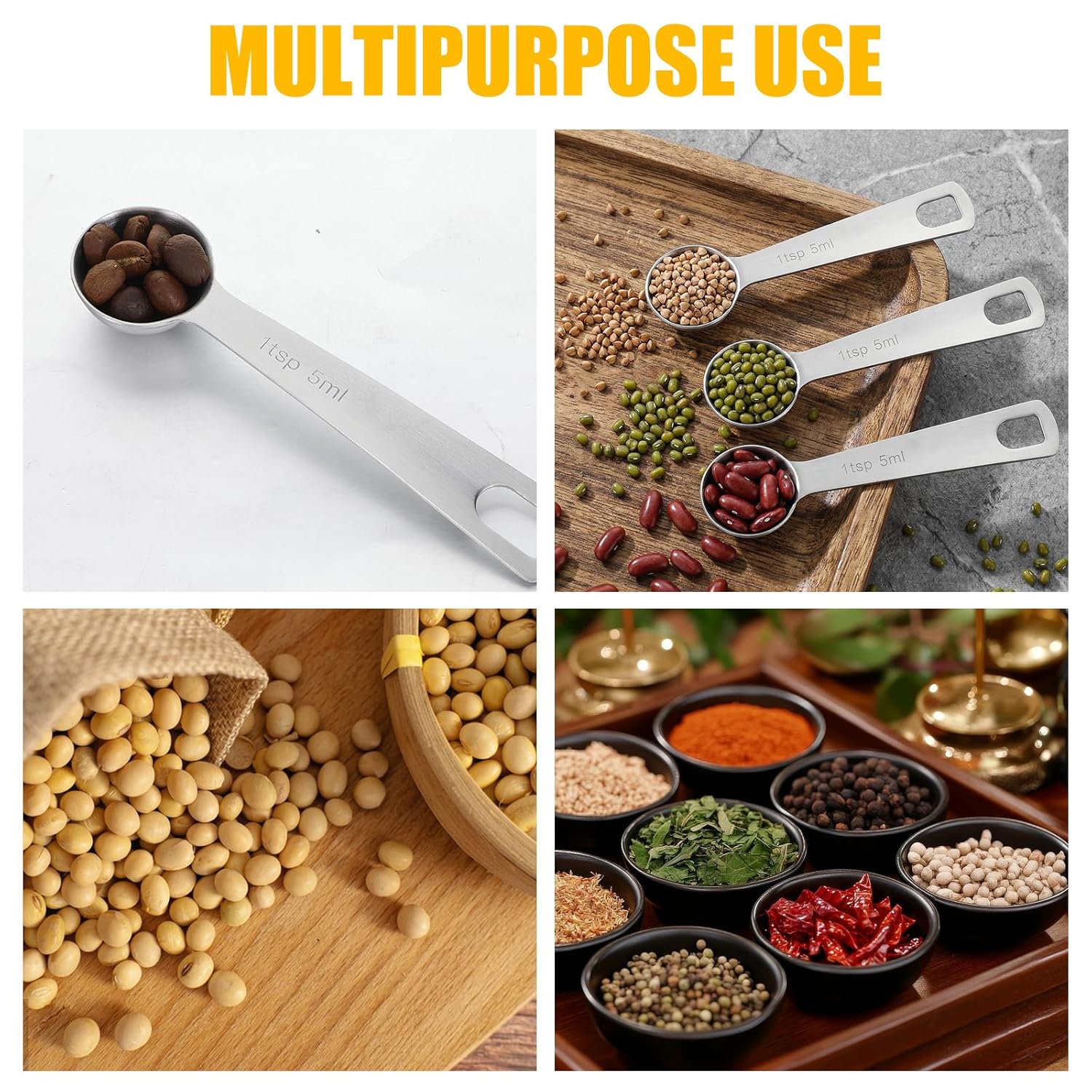 【Versatile Use】Perfect for measuring coffee, spices, sugar, and more, these spoons cater to both dry and liquid ingredients. Their multipurpose nature makes them essential kitchen gadgets, fitting seamlessly into any culinary task.
