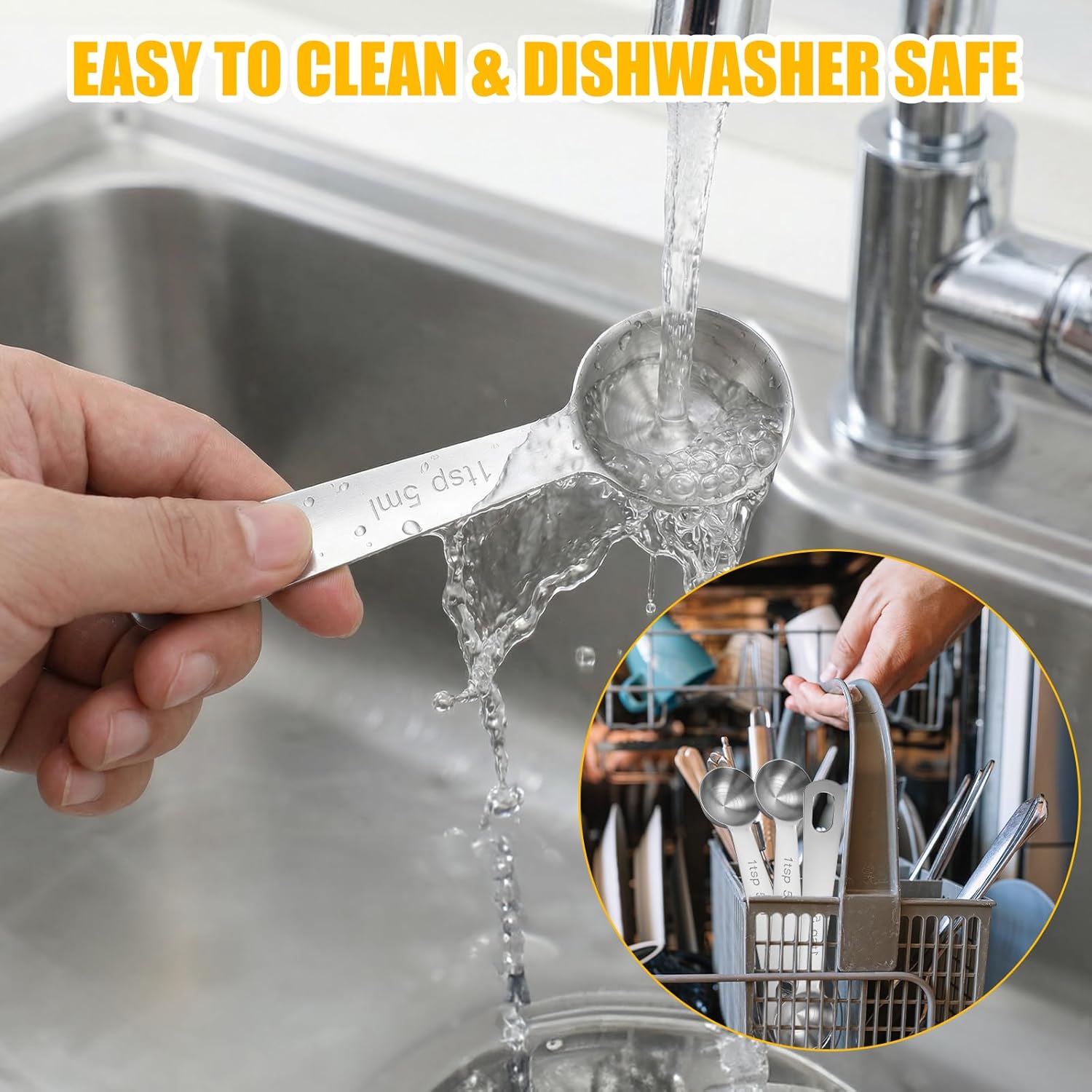 【Durable Material】Crafted from high-quality stainless steel, these measuring spoons are designed to resist rust and corrosion, ensuring long-lasting use in your kitchen. The sturdy construction makes them reliable tools for precise cooking and baking.