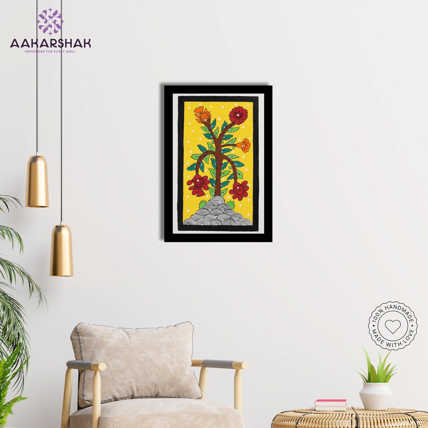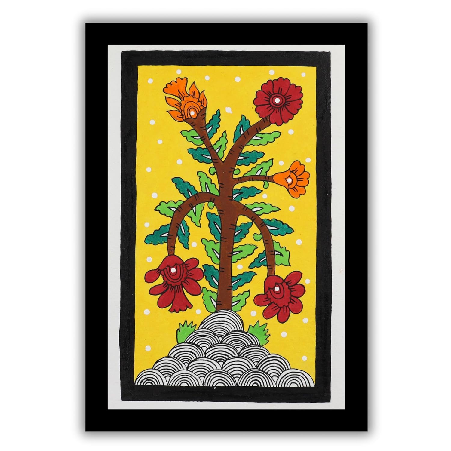 Entirely hand-painted by skilled artisans on premium handmade paper using hand, nib, paintbrush, and acrylic colors. This artwork features traditional motifs, geometric patterns, and natural elements, ensuring each piece is unique.