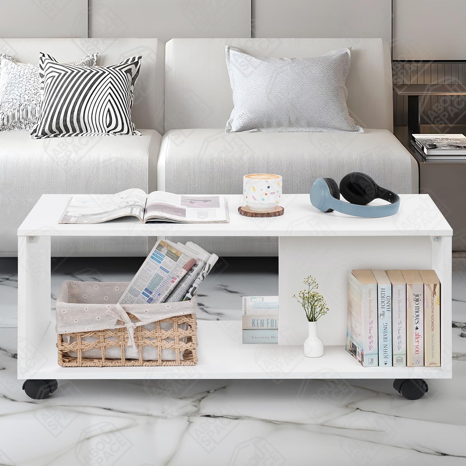TEAPOY for LIVING ROOM: Furnish your living room with ABOUT SPACE modern centre table with wheels ensuring stability and durability that will last you a lifetime. Its slim and elegant design will surely add a modern vibe.