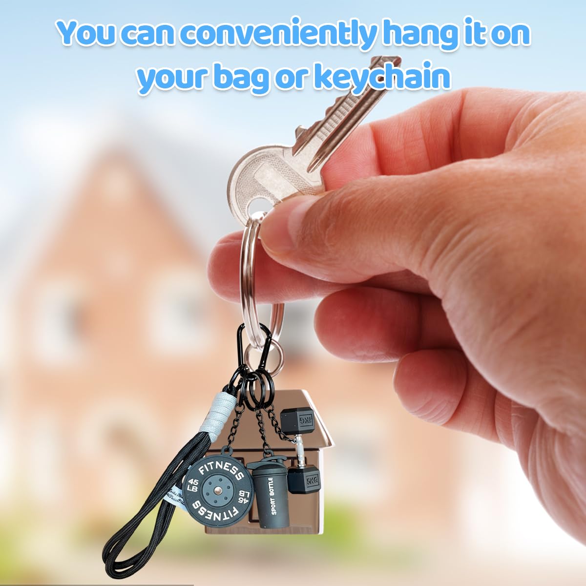 Miniature Dumbbell Charm: The dumbbell is sized at approximately 1.5–2 inches long—small enough to be cute and unobtrusive, but large enough to showcase its details (like realistic “weights” on either end and a textured “handle” for grip). It’s available in vibrant, gym-inspired colors (e.g., neon pink, bold blue, classic black, or soft gray) that pop against bags or keys, making it easy to spot your essentials in a crowded gym locker or purse.