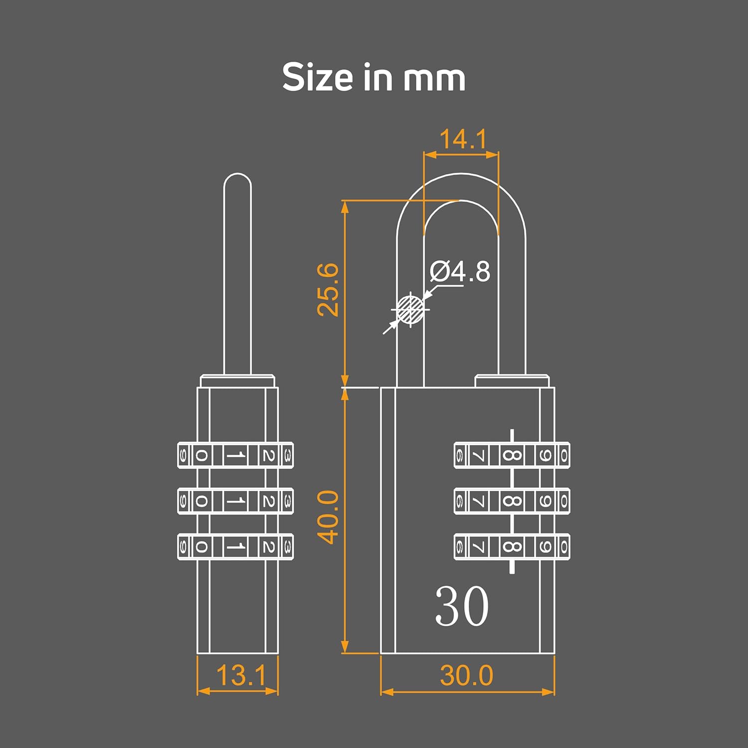 SET OF 2 LOCKS : Pack of 2 keyless padlocks in black and silver – 30mm width x 70.4mm height x 15.3mm thickness.