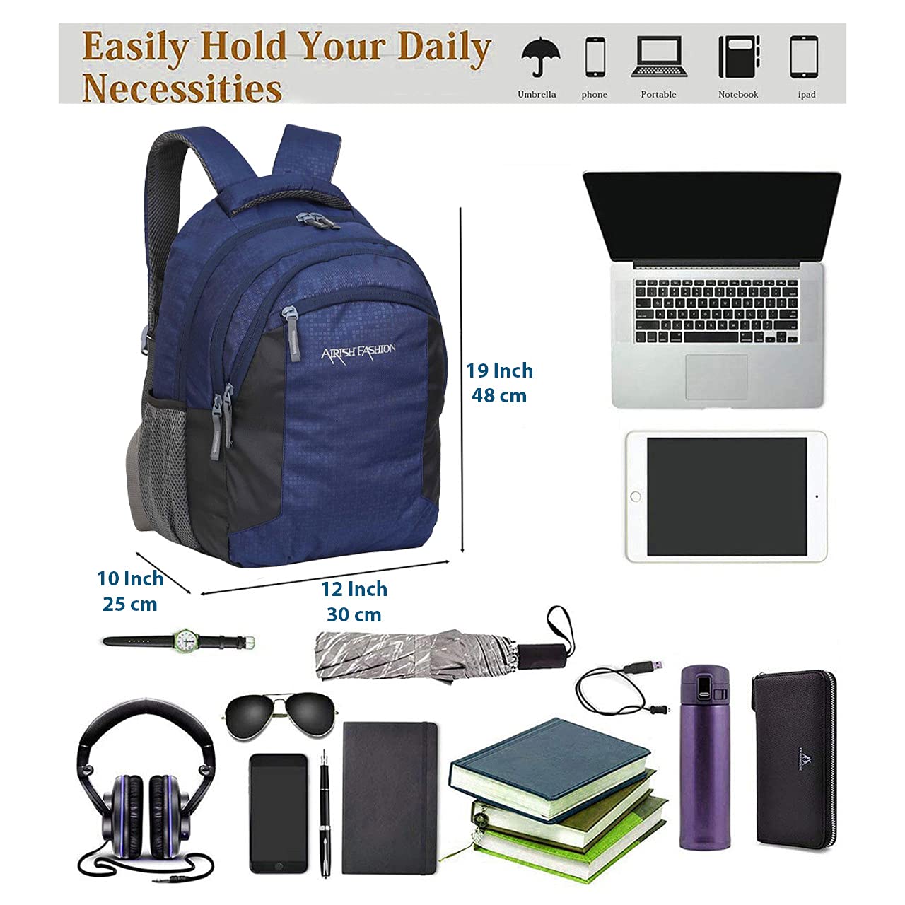 Airish : A Spacious and durable laptop backpack for casual usage, school / college / office and travel. Size: 20 inch X 13.5 inch X 9.5 inch. Capacity: 35 liters. This bagpack is made of high grade water resistant polyester material that gives it strength and durable for long-term use. It carries 12 months warranty for any manufacturing defects. This “MAKE IN INDIA” Product features 4 large zippered compartments, padded laptop sleeve for upto 15.6″ laptops, internal organizer, 2 water bottle /umbrella pockets, padded handle, quick haul grab loop for comfort, back panel for preventing sweat, heavy duty zippers and sliders, and adjustable straps. Ideal bag for boys, girls, men and women