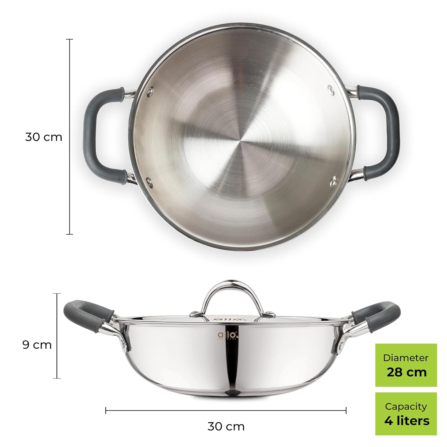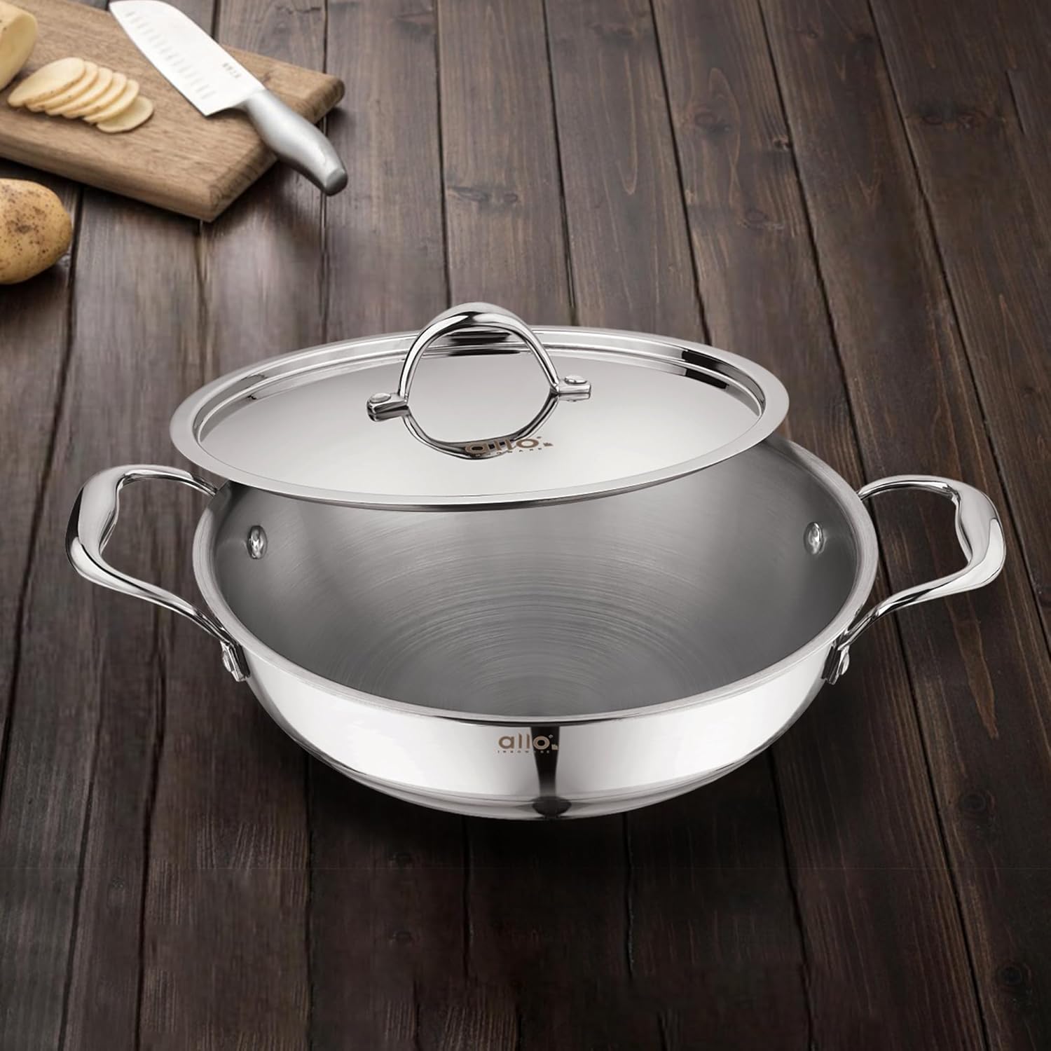✔I AM DISHWASHER SAFE & EASY TO CLEAN TRI PLY STAINLESS STEEL KADHAI – My nonstick interior prevents food from sticking and makes cleanup effortless. Moreover, I am 100% dishwasher safe non stick kadhai, saving you time on clean-up after your meal. ✔WARRANTY – 10 years manufacturer’s warranty on allo steel kadai.