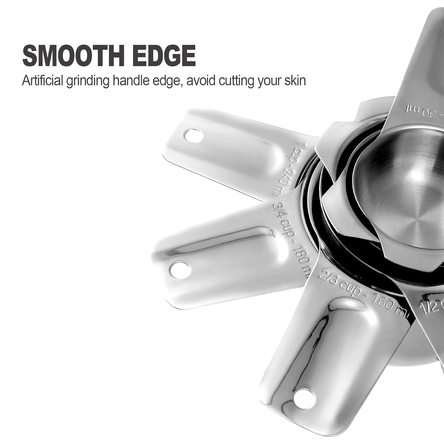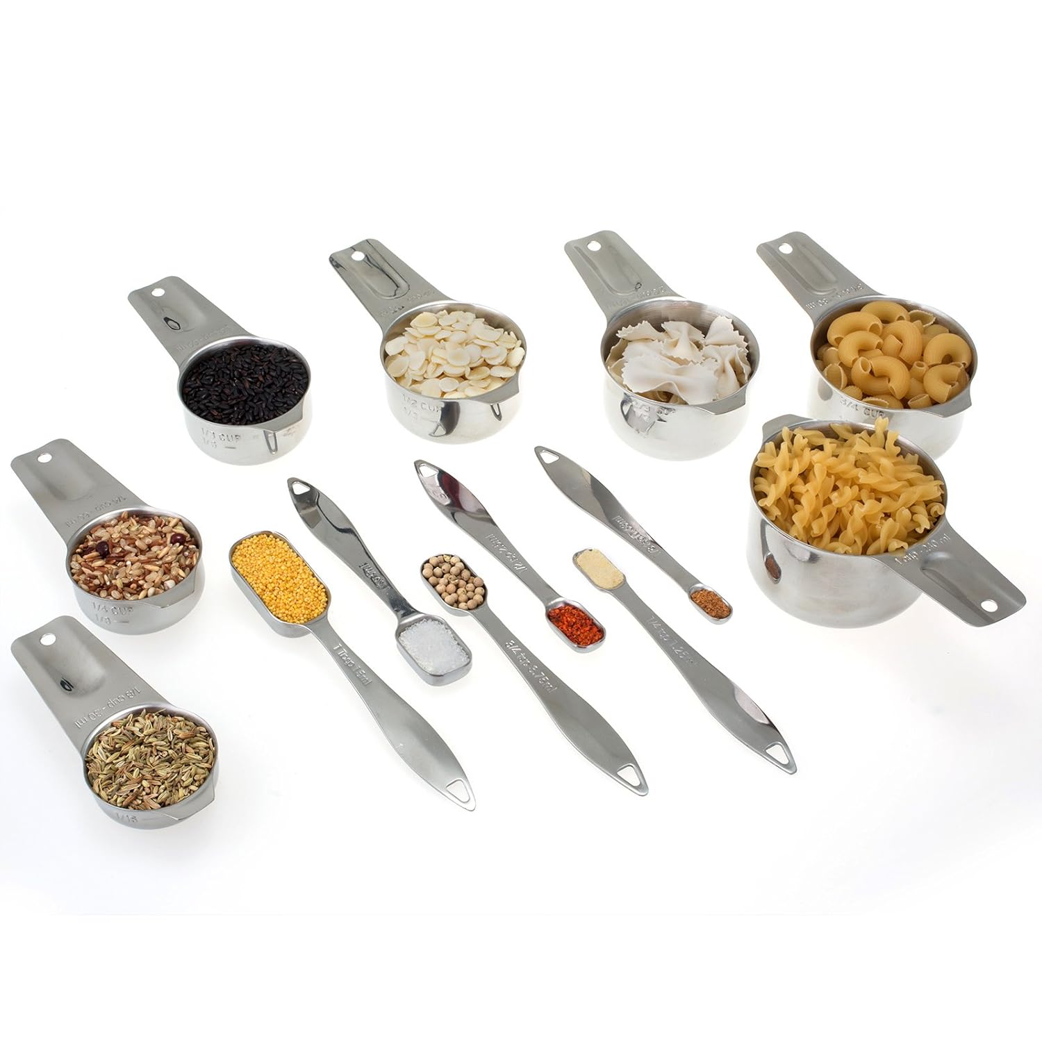 Contains 7 cups: 1/16cup, 1/4 cup, 1/3 cup, 1/2 cup, 2/3 cup, 3/4 cup, 1 cup.