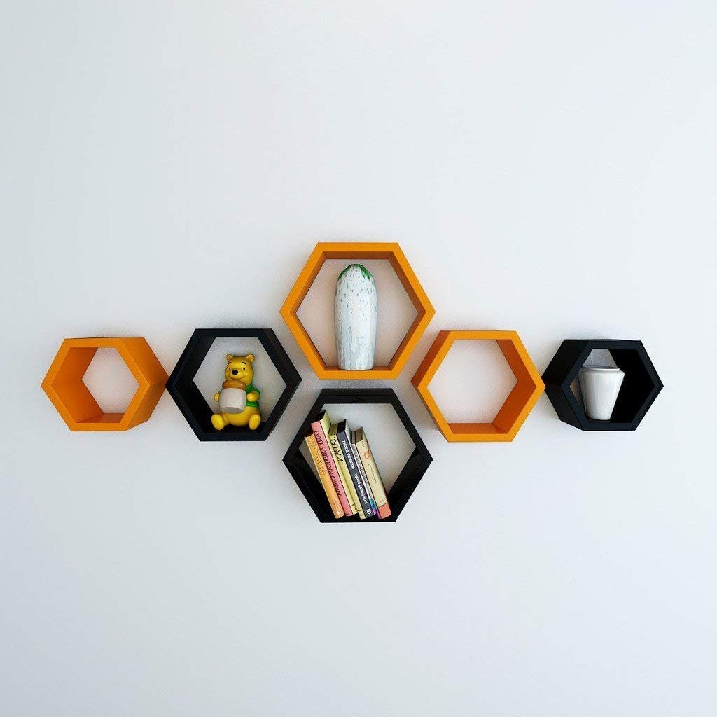 Be the first to review “Amaze Shoppee Decorative Wooden Hexagon Shape Wall Shelf with 6 Shelves (Brown & Orange)” Cancel reply
