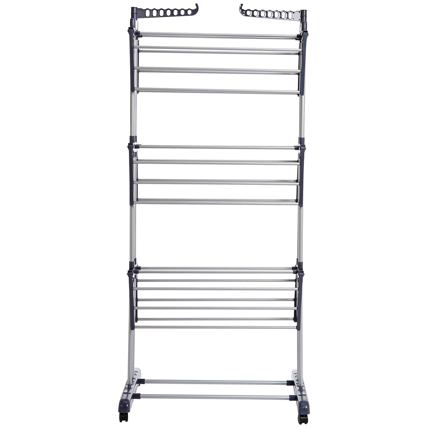 Amazon Brand – Solimo Premium Extra Large Cloth Drying Stand, Stainless Steel (Natural SS & Blue)