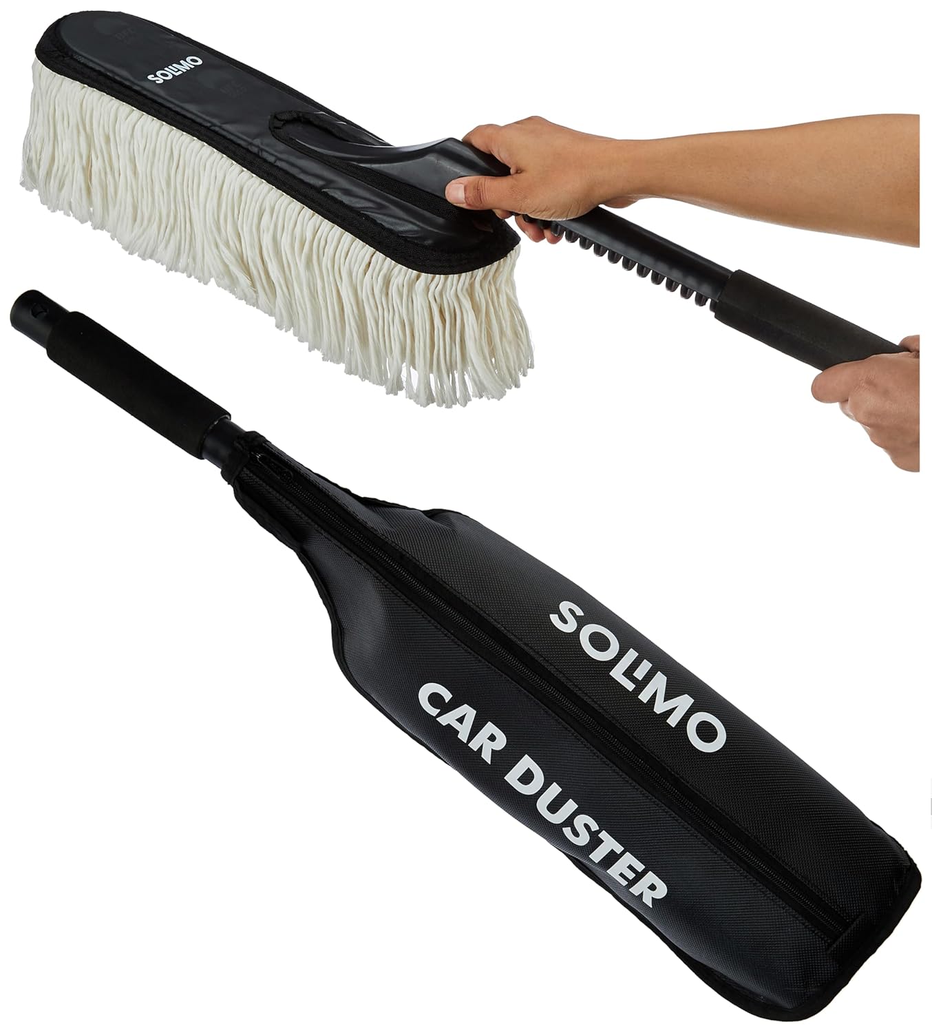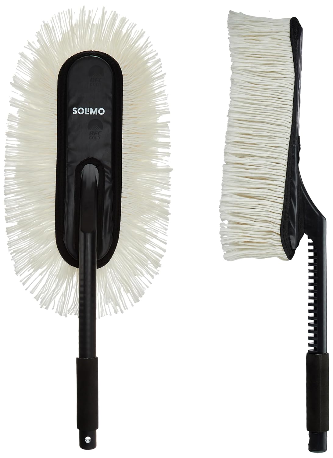 Introducing the Amazon Brand – Solimo Super Soft Microfiber Car Duster, an essential tool for keeping your car clean and dust-free. With its anti-scratch and lint-free bristles, this duster effortlessly removes dirt and dust without causing any damage to your vehicle’s surface. Crafted with PP handle, the duster offers easy access to hard-to-reach areas of your car’s interior and exterior. The soft foam grip ensures a comfortable cleaning experience, making it ideal for everyday use. Use it dry or with water, avoiding harsh chemicals for a safe and eco-friendly alternative. Designed with fine and dense microfiber bristles, the duster guarantees maximum dirt absorption while being ultra-soft and firm to prevent scratches or lint build-up. This helps maintain a spotless finish on all surfaces, giving you a worry-free cleaning experience every time. The flat design of the dust cleaner allows you to reach difficult corners of your car without any hassle. The PP handle provides a stable grip that prevents shifting or slipping during use while offering optimal comfort. The duster also comes with detachable brush head that can be easily washed with water for daily maintenance. Simply give it a good shake or rinse occasionally to get rid of excess dust buildup. This makes it reusable and more cost-effective than disposable options. Not just limited to cars, this versatile cleaner is perfect for outdoor cleaning on bikes, patios, garages, etc., as well as indoor home use on shelves, countertops, etc. Get your Amazon Brand – Solimo Super Soft Microfiber Car Duster today and say goodbye to pesky dust build-up in your life!