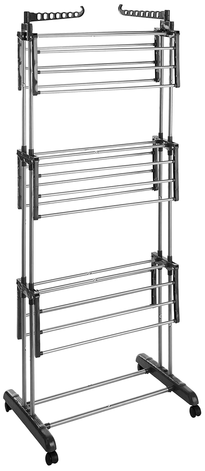amazon basics Premium Cloth Drying Stand – 3 Way Folding, 42 Feet Drying Length, 20 Drying Rails, Lightweight (Silver) Alloy Steel