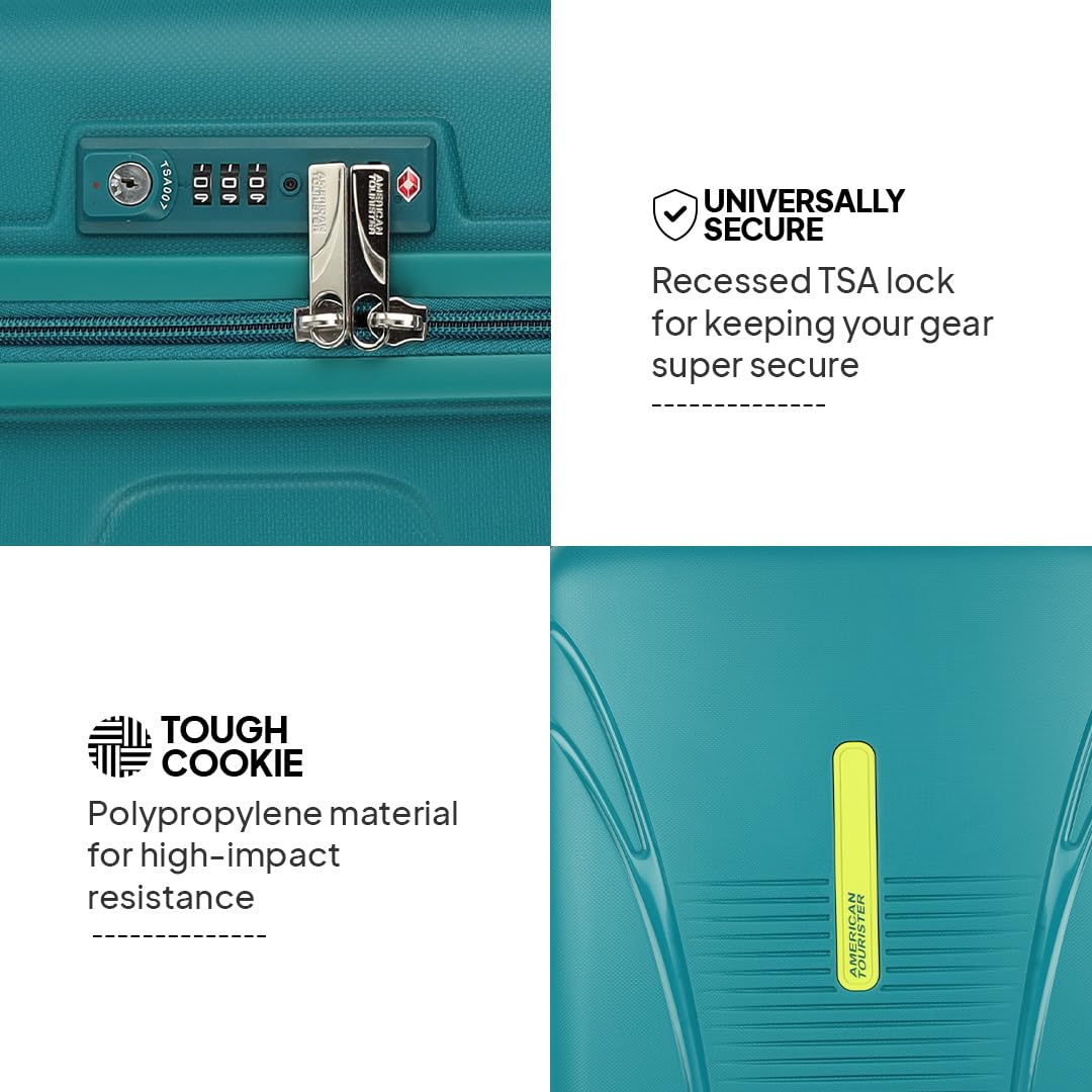 Adventure awaits American Tourister Ivy, your trendy travelmate with a standout personality! Enjoy hassle-free security with its globally trusted Recessed TSA lock, ensuring your belongings stay safe while you breeze through inspections. Stand out from the crowd with vibrant colors that scream fun and flair! And don’t worry about rough handling – the dent-resistant shell can take whatever comes its way. With smooth sliding wheels, you’ll roll through any terrain like a pro, while the adjustable trolley keeps comfort at your fingertips. Travel with Ivy and turn every trip into a joyride!