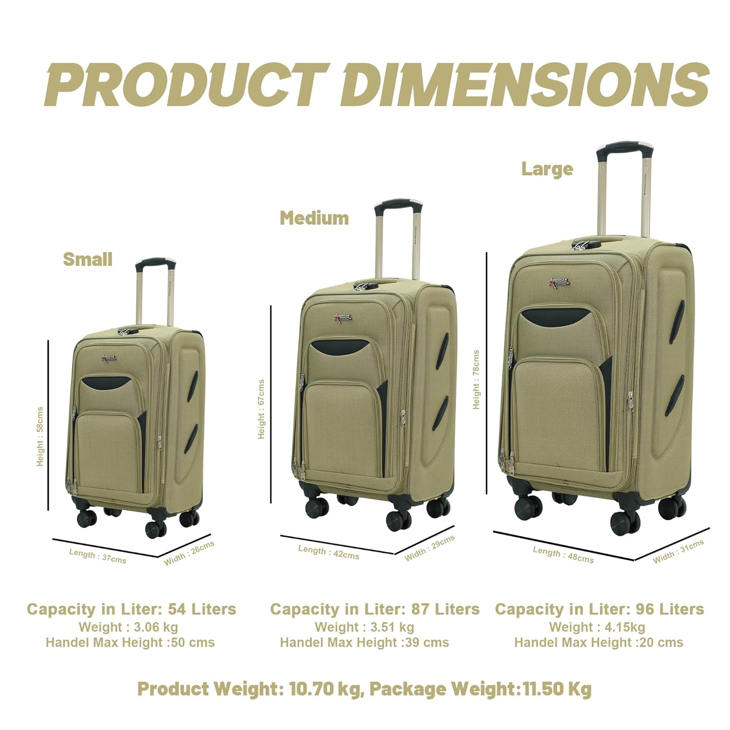 ✅ ELEGANT TWILL SOFT-SHELL TEXTILE: Premium dual-tone finish (Navy/Beige, Tea Green/Beige, Dark Grey/Black). Durable, refined luggage trolley set built for daily travel.