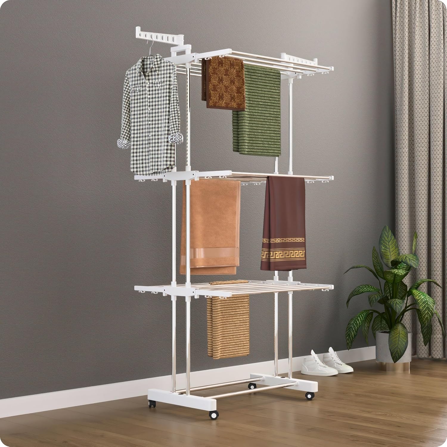 [Versatile & Multi-Use]: Designed for both indoor and outdoor drying—great for balconies, terraces, laundry rooms, or during rainy seasons and winter months.