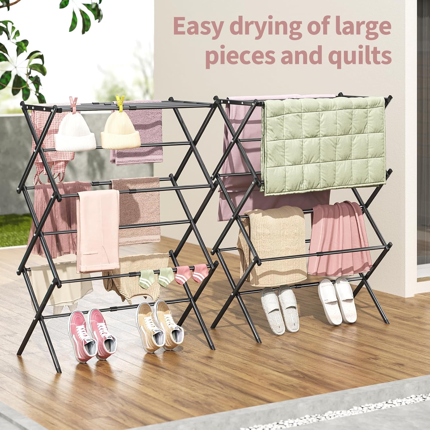 Material: The APEXCHASER clothes drying rack is made of all metal and has a rust-resistant coating, which can endure different weathers for indoor and outdoor use, making it perfect for apartments or small living spaces.