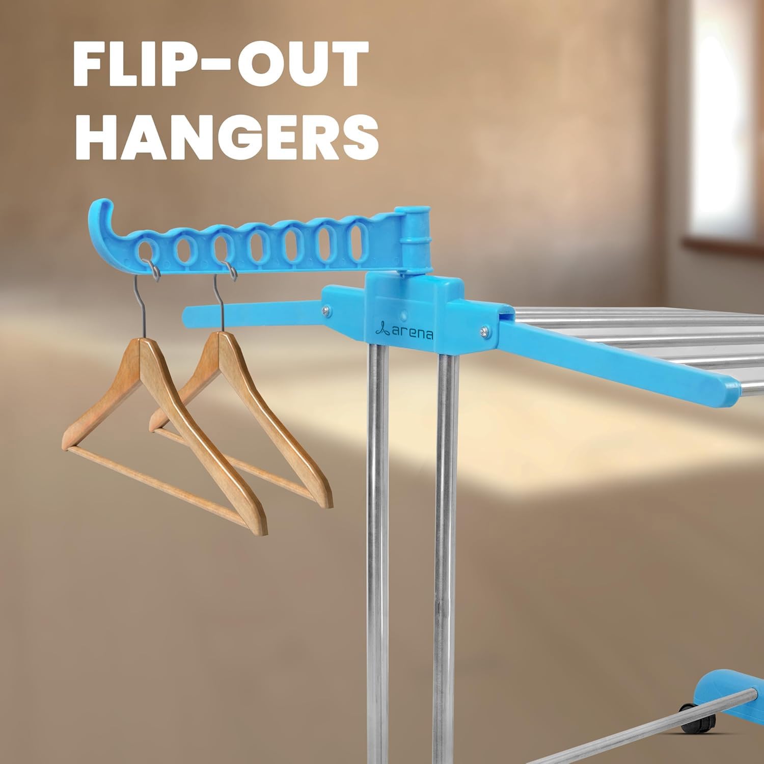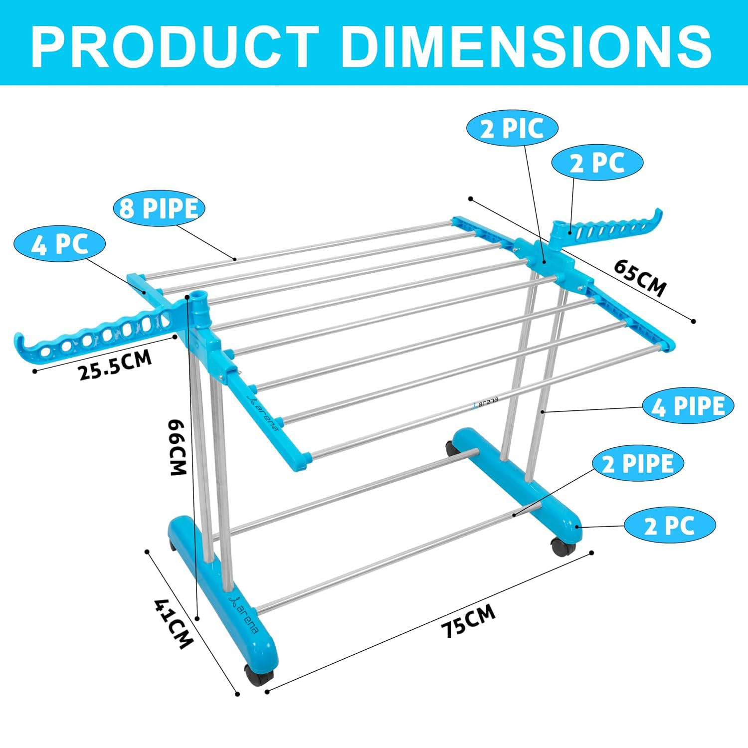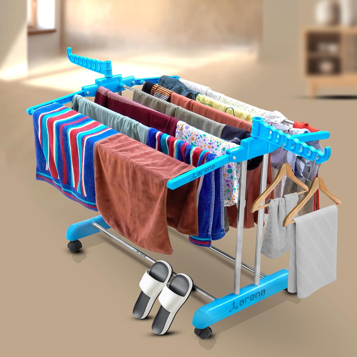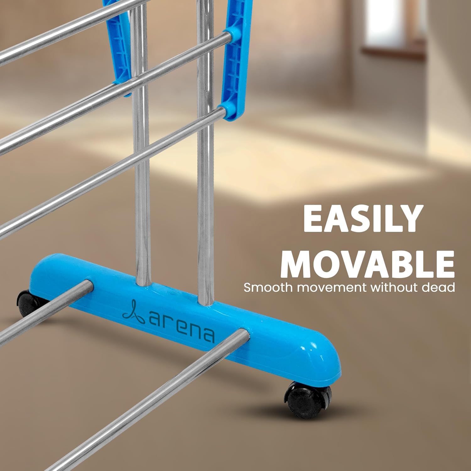Arena Heavy Duty Stainless Steel Foldable Cloth Drying Stand – 1 Tier The Arena cloth stand for drying clothes foldable is designed to provide a sturdy and space-saving solution for drying clothes efficiently. Made from heavy-duty stainless steel, this clothes drying stand is rust-resistant, durable, and perfect for both indoor and outdoor use. Whether you need a cloth dryer stand for everyday laundry or a cloth stand that fits in small spaces, this foldable clothes drying stand is the ideal choice. Key Features & Benefits: Foldable & Space-Saving Design: The cloth stands for drying clothes can be folded flat when not in use, making it perfect for compact spaces like apartments, balconies, and laundry rooms. Heavy-Duty Stainless Steel Build: Unlike plastic alternatives, this steel clothes stand for drying is rust-proof, sturdy, and designed for long-lasting durability. Ample Drying Space – This clothes drying stand wall mounted alternative offers multiple rods to accommodate a variety of clothing items, from heavy garments to delicate fabrics. Indoor & Outdoor Use – Whether placed on balcony dry racks or used as a kapde sukhane ka stand in laundry rooms, this cloth dryer is designed to withstand different weather conditions. Easy to Use & No Installation Required – Unlike a cloth drying rope with pulley, this wall mounted cloth drying stand requires no drilling or complicated setup—simply unfold and use. Stable & Sturdy Structure – The clothes hanging stand ensures maximum stability while holding a large number of clothes, making it a reliable dress drying stand for clothes. Portable & Lightweight – Move this portable clothes dryer effortlessly between rooms, balconies, or outdoor spaces, making it an efficient clothes drying stand for balcony. Upgrade your laundry routine with the Arena cloth drying rack, a practical and space-saving solution for drying clothes at home!