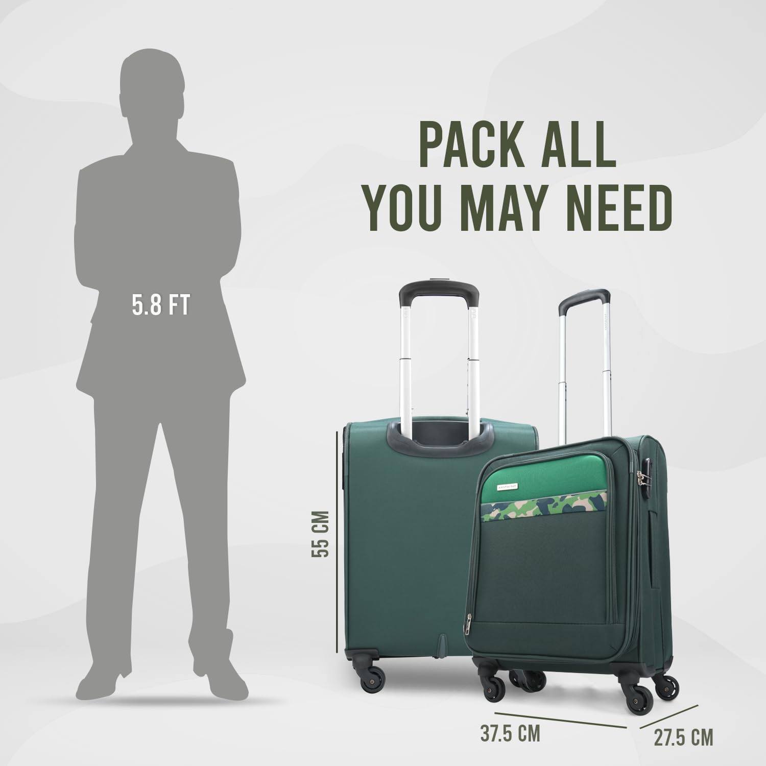 Premium trolley and 360° spinner wheels for ease of manuvering