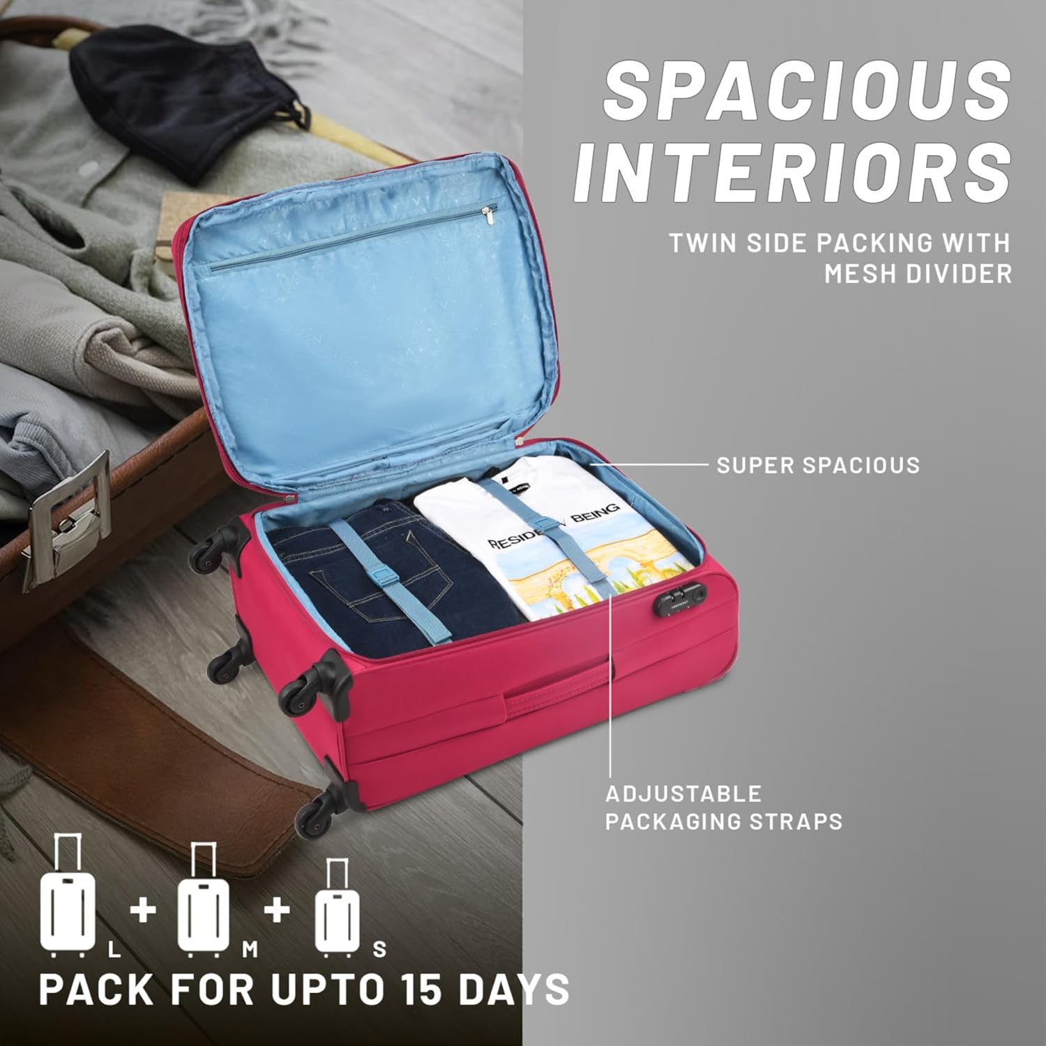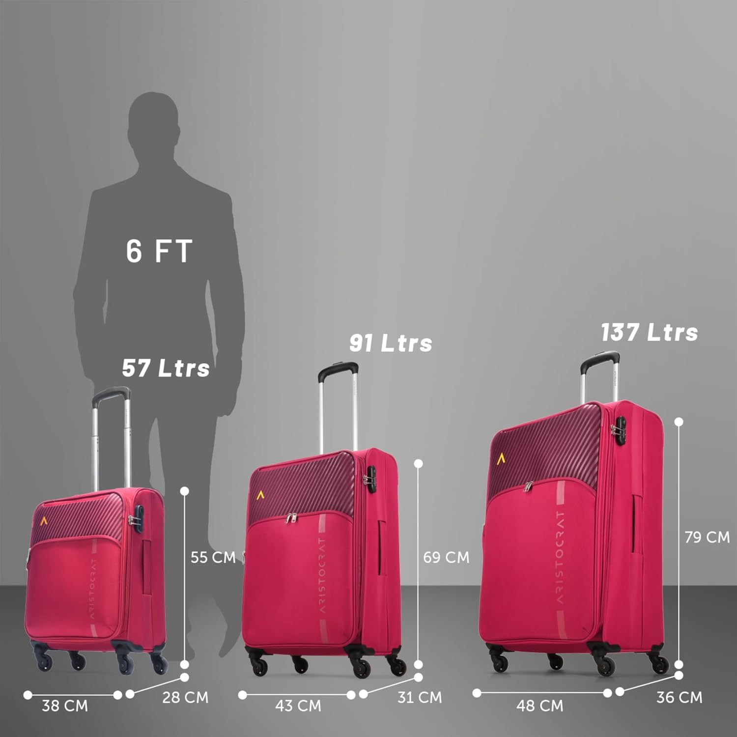 Be the first to review “Aristocrat Striker Set of 3 Cabin, Medium & Large Size Soft Luggage (59 cm, 69 cm & 79 cm) | Spacious Polyester Trolley with 4 Wheels and Combination Lock | Dazzling Maroon | Unisex” Cancel reply