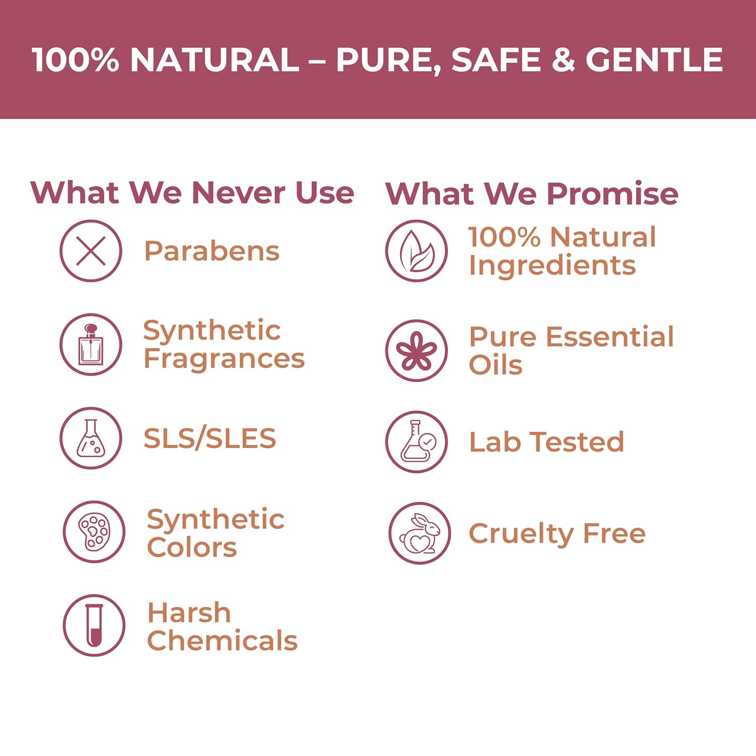 No Harmful Elements: SLS/SLES Free, Paraben Free, Synthetic Chemical Free, No Artificial Fragrances, No Synthetic Color, No Alcohol, All Ingredients are derived from Nature