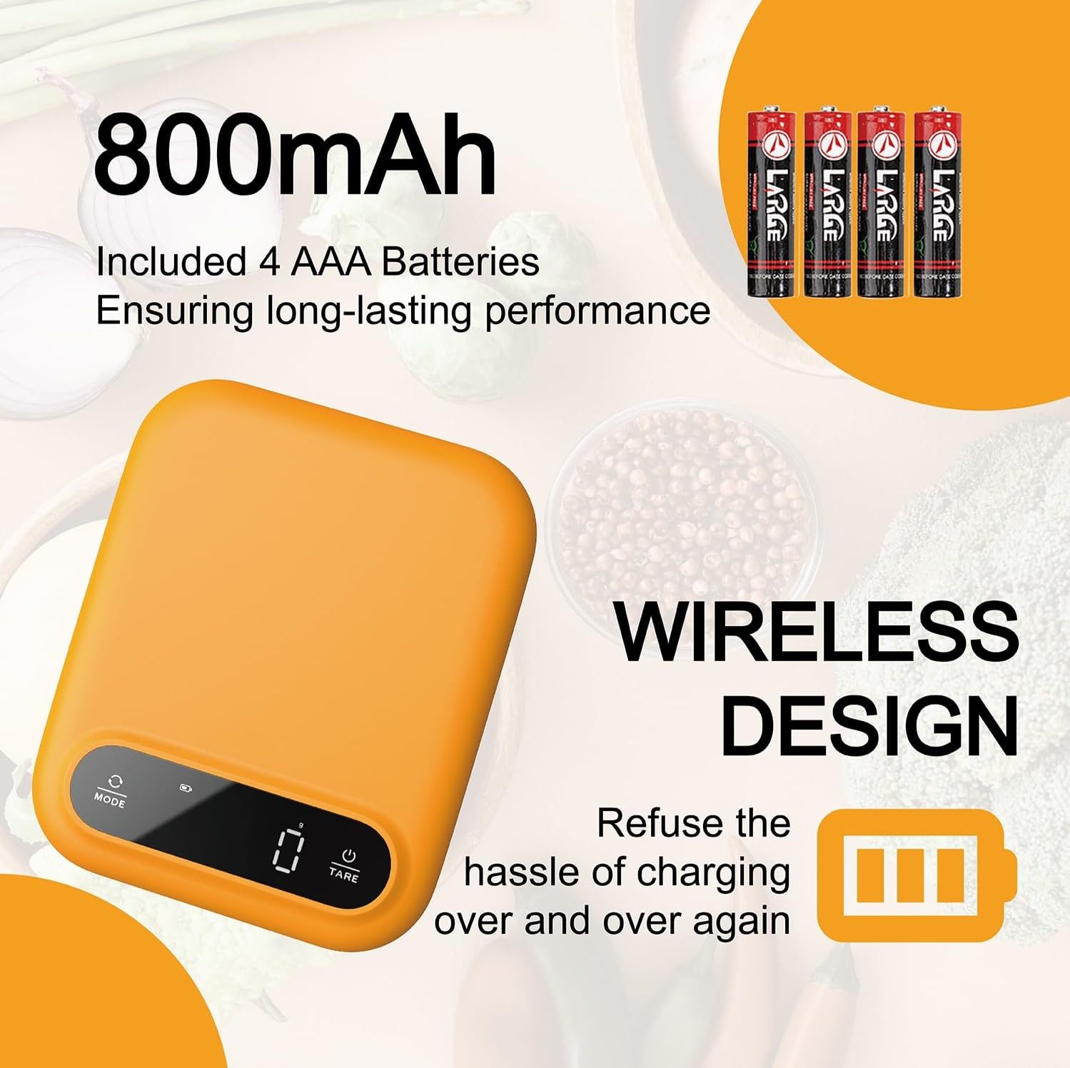 Long-lasting Batteries: The cooking scale comes with 4 built-in AAA batteries,our kitchen food scale automatically shuts off after 180 seconds of inactivity,ensuring long-lasting performance.