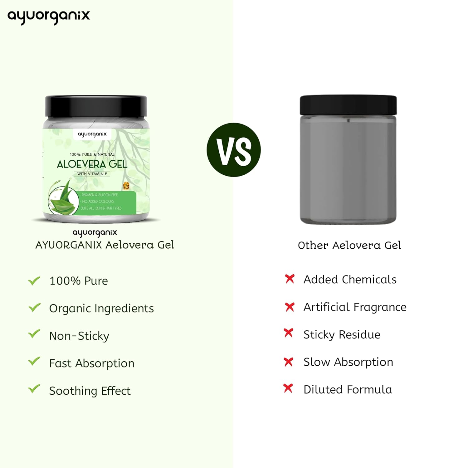 ✅ 100% Pure & Organic Aloe Vera Gel – Made from natural aloe extract, enriched with Vitamin E for deep hydration and nourishment.