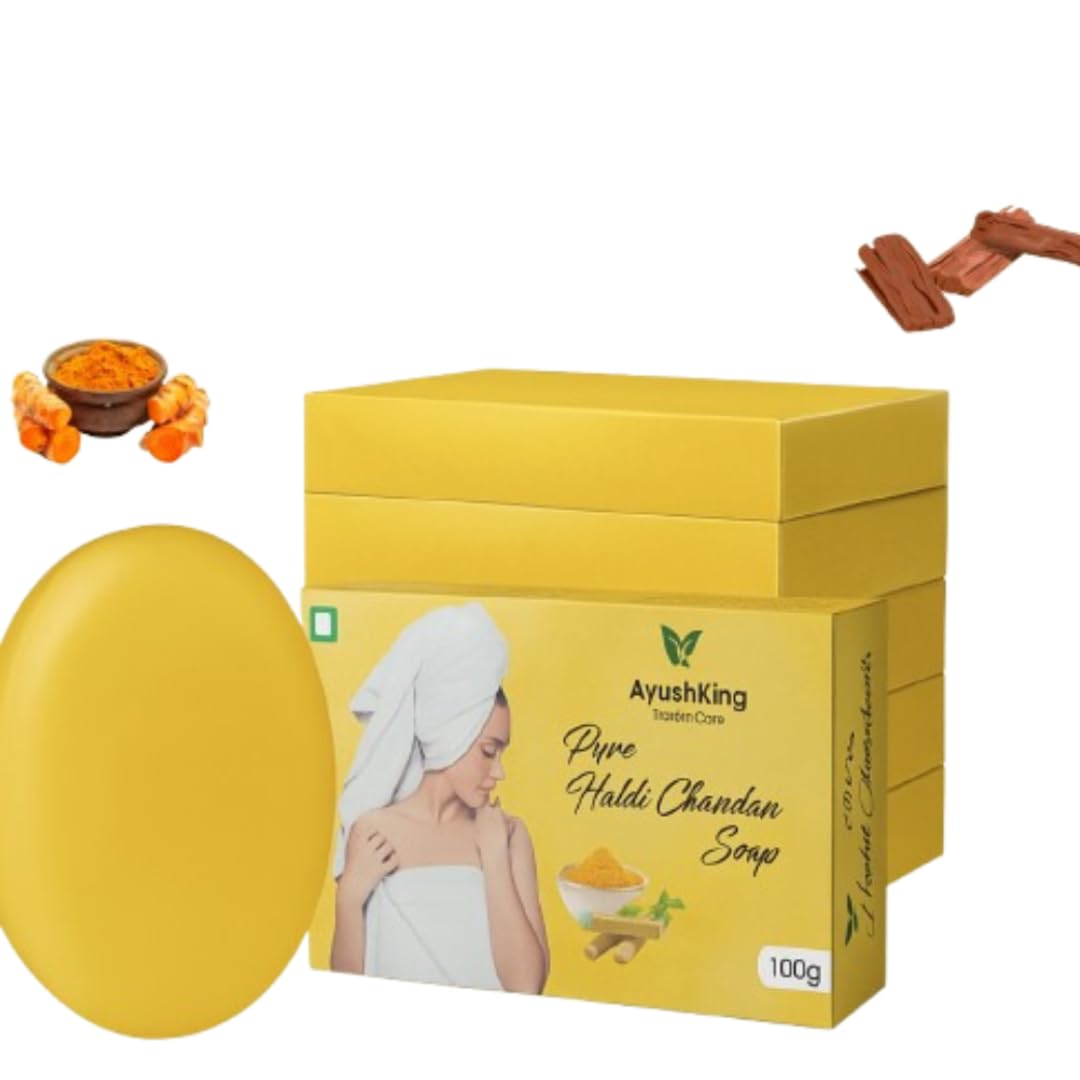 Be the first to review “AyushKing Pure Haldi Chandan Soap | Ayurvedic Turmeric & Sandalwood Bathing Bar for Glowing, Radiant Skin | Anti-Acne & Tan Removal | Suitable for All Skin Types | 100g (Pack of 1, Turmeric and Sandalwood)” Cancel reply