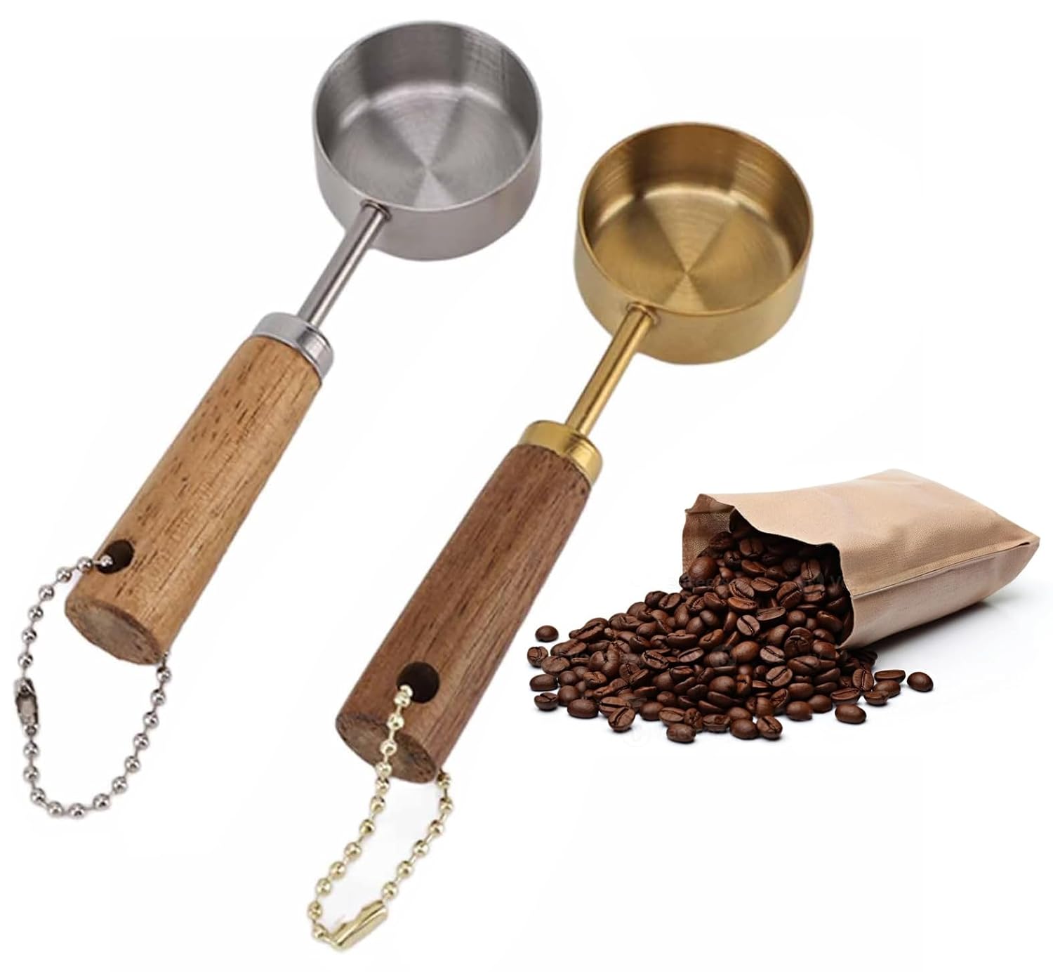 These stainless steel 15ml Measuring spoons with wooden handle makes a nice addition to your kitchen. Primarily used for measuring coffee, it can also be used to measure other food items such as Sugar, Seeds, Spices and flour. It can also be used as a spoon for your spice jars or other food product jars.