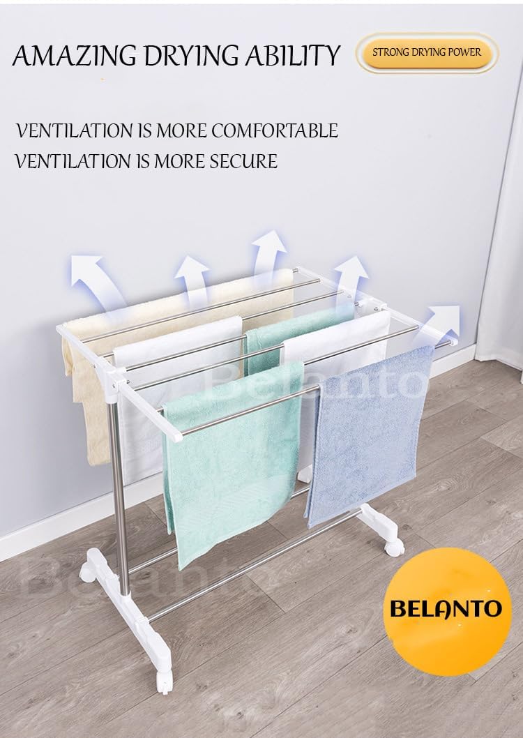 Belanto Foldable Clothes Stand for Drying with Wheels , Laundry Dryer, Adjustable with Stable Stand, Space-Saving Clothes, Easy Storage, for the Balcony at Home
