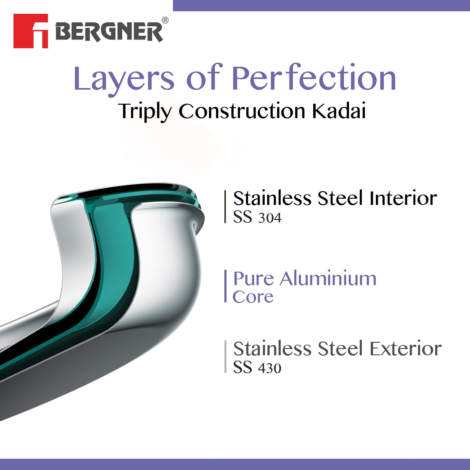 Tri-Ply Construction : Even heat distribution prevents hot spots, ensuring perfectly cooked meals every time