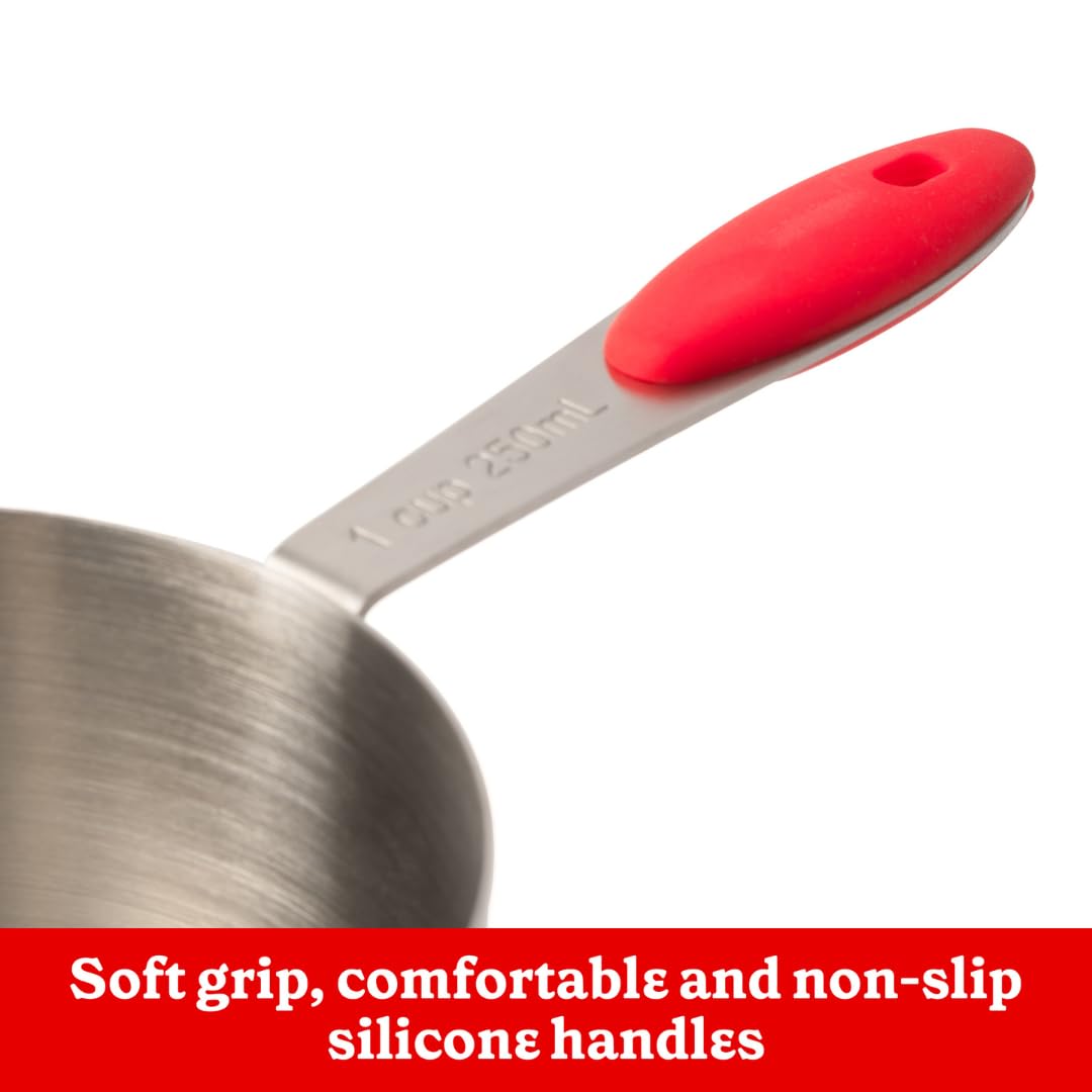 Elevate your culinary adventures with this Betty Crocker Measuring Cooking Bundle! This essential set is perfect for all your cooking and baking needs, ensuring precise measurements for every recipe. Measuring Spoon Set: Durable: Crafted from high-quality stainless steel for long-lasting use. Versatile: Dual-end design with narrow oval spoons for jars and round spoons for liquids. Easy Storage: Magnets snap each piece together for convenient storage. Sits Flat: Designed to lay flat on surfaces to prevent spills. Easy to Clean: Dishwasher safe, odor and stain resistant. Includes: 5 spoons with dual ends – 1 tbsp (15ml), 1/2 tbsp (7.5ml), 1 tsp (5ml), 1/2 tsp (2.5ml), 1/4 tsp (1.25ml). Measuring Cup Set: Durable: Made from sturdy stainless steel. Easy to Hold: Soft grip, non-slip silicone handles for comfort. Easy to Store: Nests together for compact storage. Easy to Clean: Dishwasher safe, odor and stain resistant. Includes: 5 cups – 1 cup (250ml), 1/2 cup (125ml), 1/3 cup (80ml), 1/4 cup (60ml), 1/8 cup (30ml). This bundle is a must-have for any kitchen, combining durability, versatility, and ease of use to make your cooking and baking experiences more enjoyable and efficient. Happy cooking!