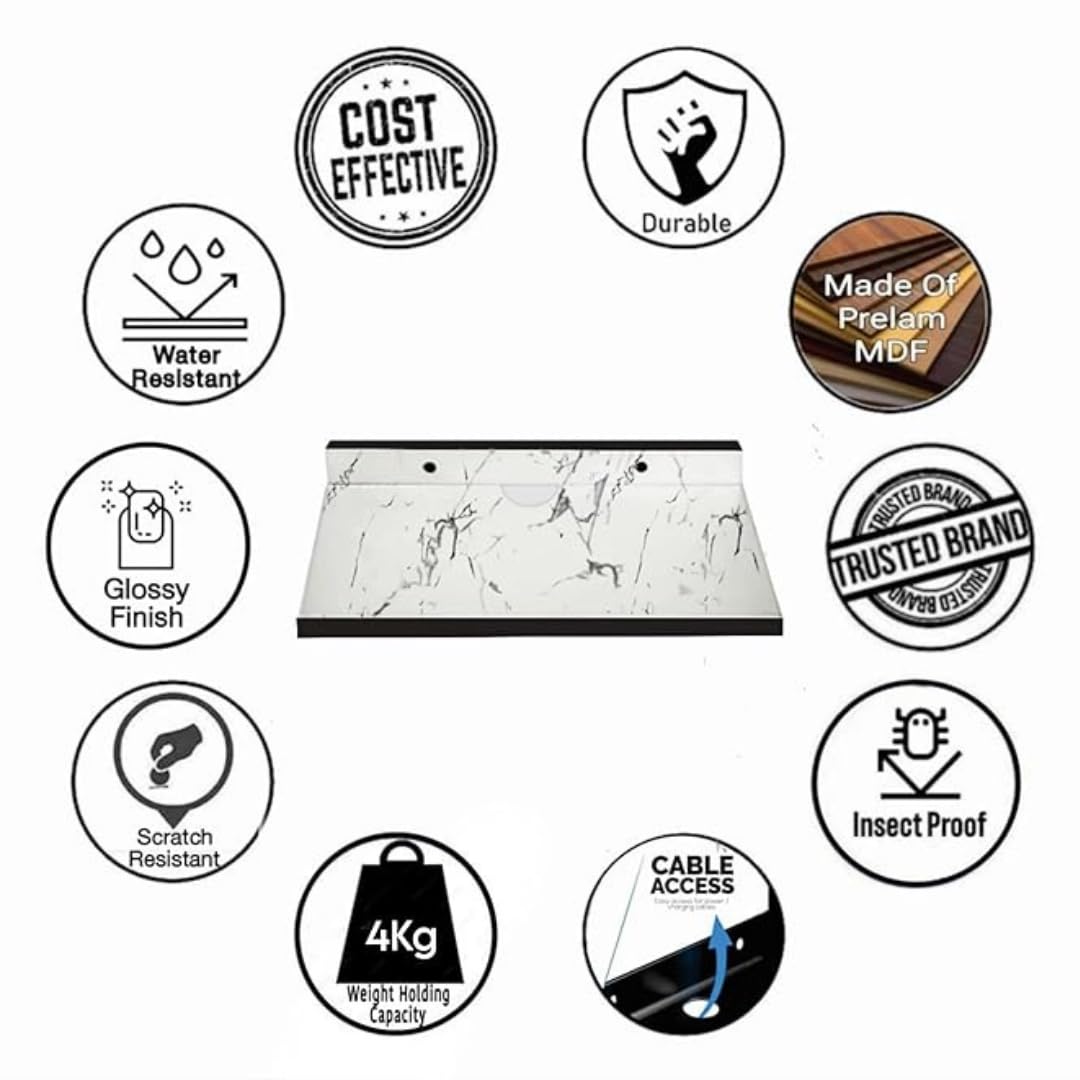 Home Furniture bhoomicasa Engineered Wood Set-Top Box Stand | Wall Mount Shelf for Set Top Box, WiFi Router, Game Console, Speakers & Remote – White, Space-Saving Home Organizer