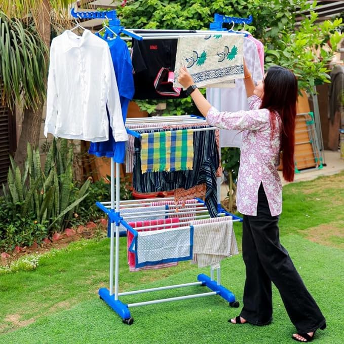 foldable and portable cloth dryer stand comes with ample drying space. The finely fabricated finish gives a luxurious appeal to the laundry area of your household. The stainless steel finish elevates the look and finish of the product. Compared to other similar design cloth dryer stand in the market, offers a folding mechanism that is unique giving the user an easier & hassle free experience when unfolding and folding. Stainless Steel Frame: A stable structure provides a large drying area and years of convenience. Save your time, energy, electricity, and money on laundry.