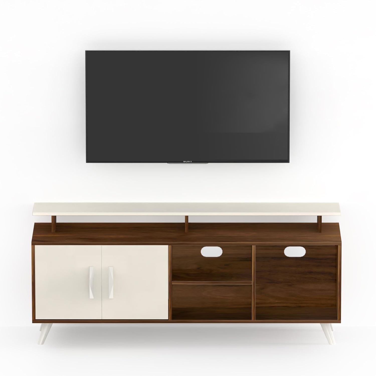Color: Brown Maple & White || Floor Standing TV Unit with Two closed Shelves for Storage || TV Size : Upto 55 Inches