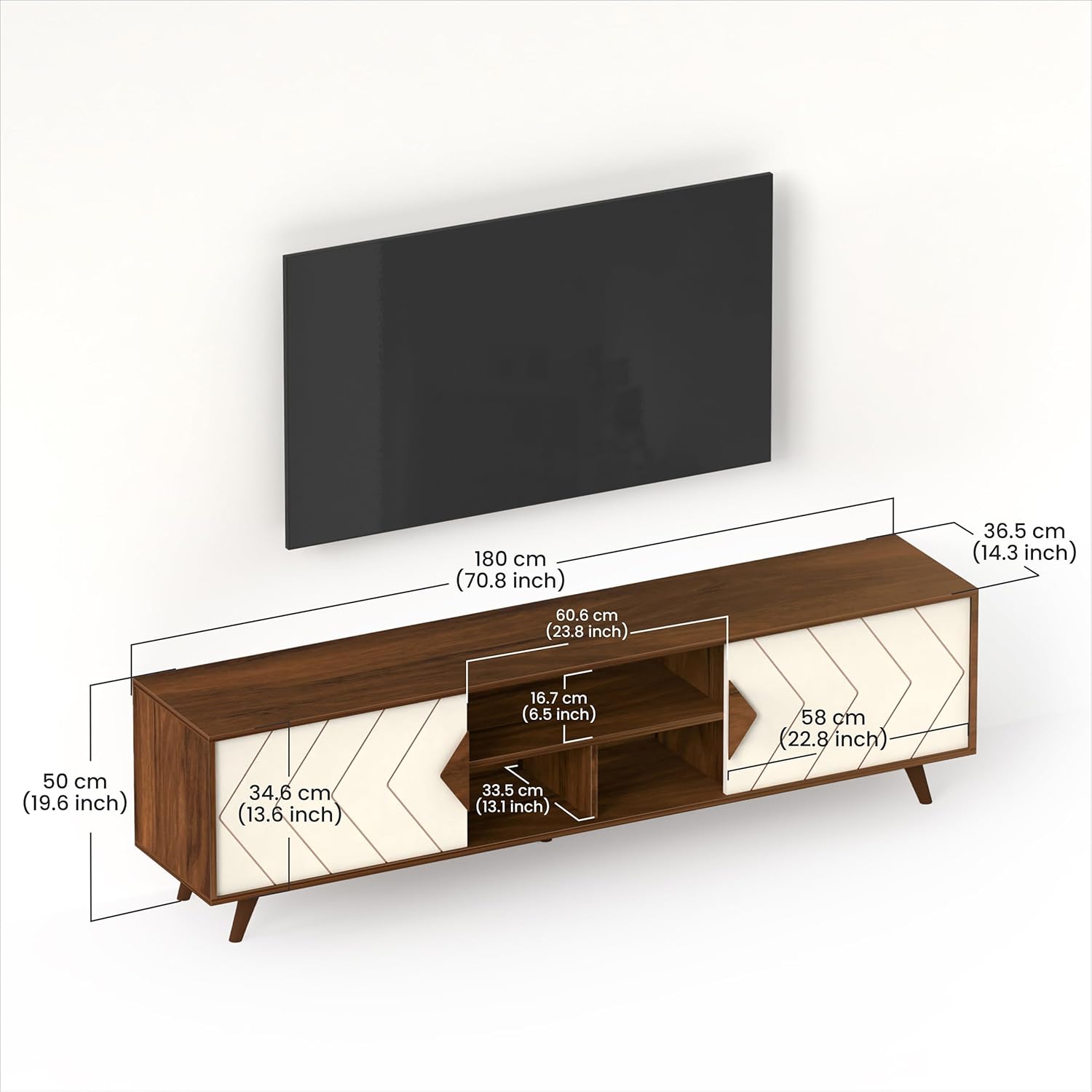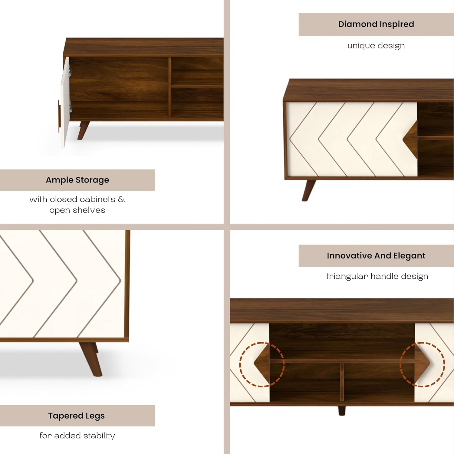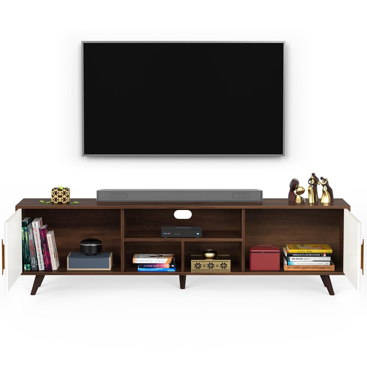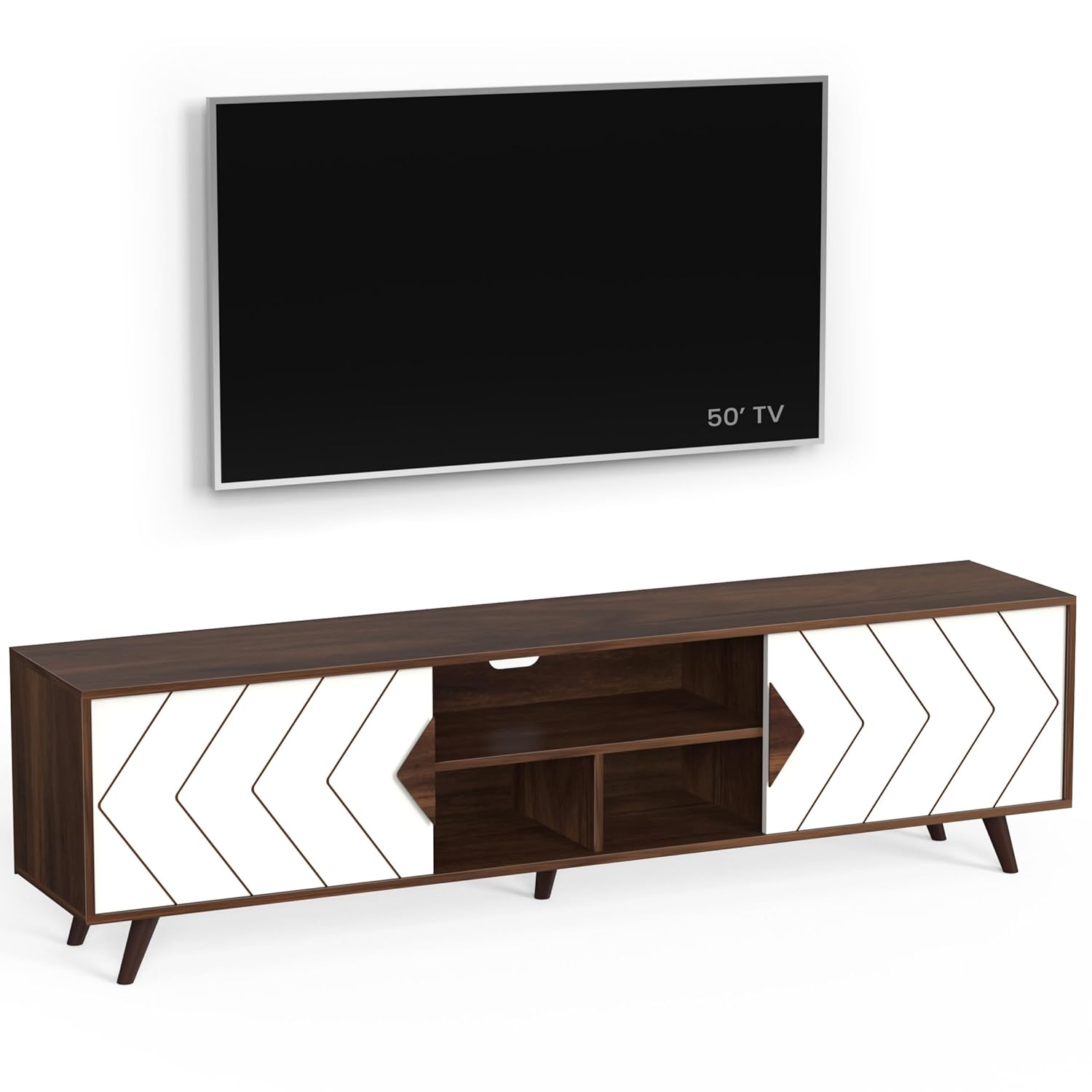 Color: Maple Brown & White, Floor Standing TV Unit with Two closed Shelves for Storage, TV Size : Upto 75 Inches
