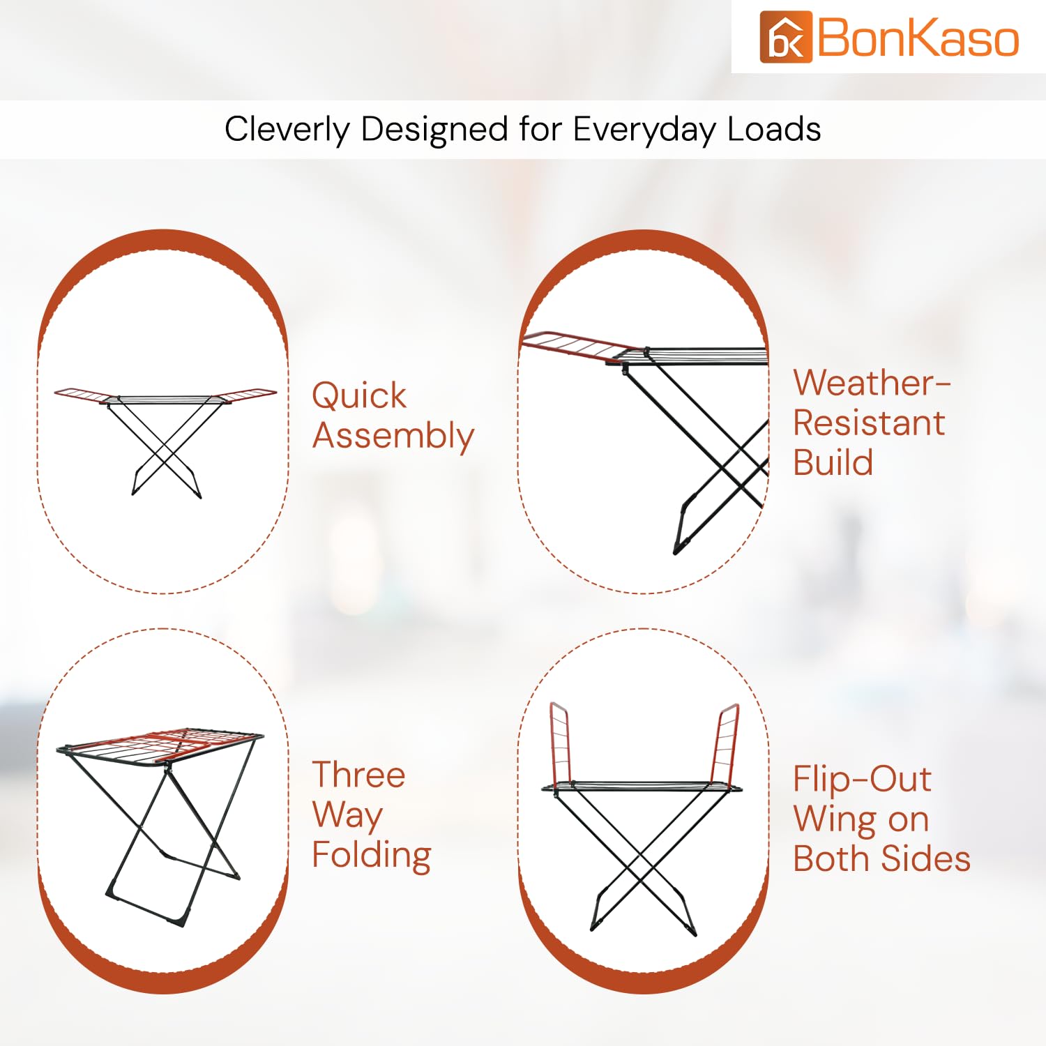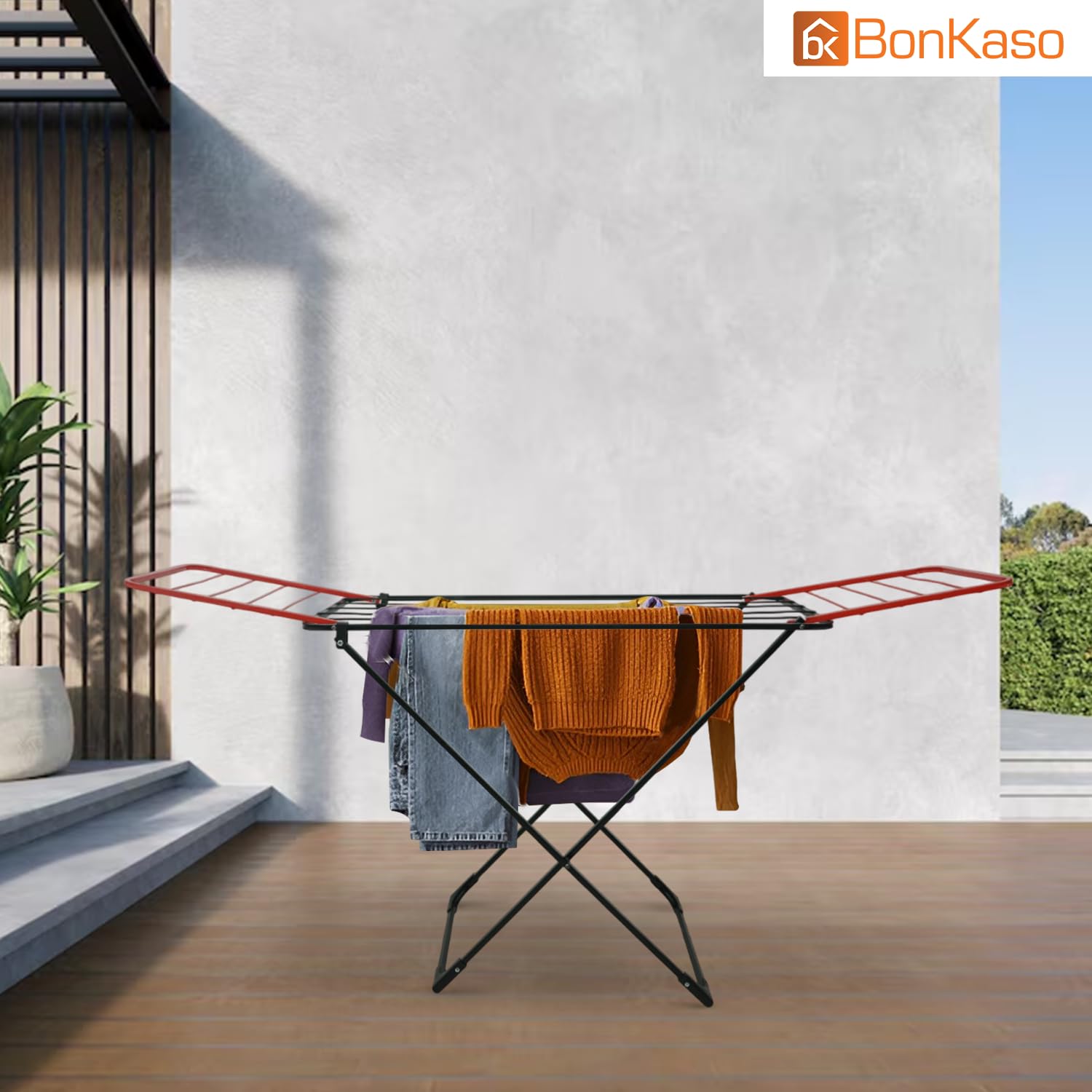 Home Home BonKaso Foldable Cloth Drying Stand for Clothes, 3-Way Folding with 17 Drying Rails, Lightweight Alloy Steel,Flat Folding Design | Indoor & Outdoor Clothes Dryer (50L x 172W x 90H) Black & Orange
