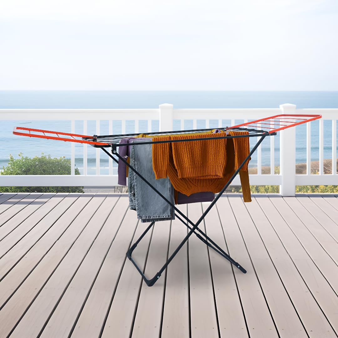 Matt Black and Orange Wings MS cloth drying racks / stands with square pipes frame ,Foldable wings, Boots for better stability ,(178 x 53 x 92)cm (Pack of 1)
