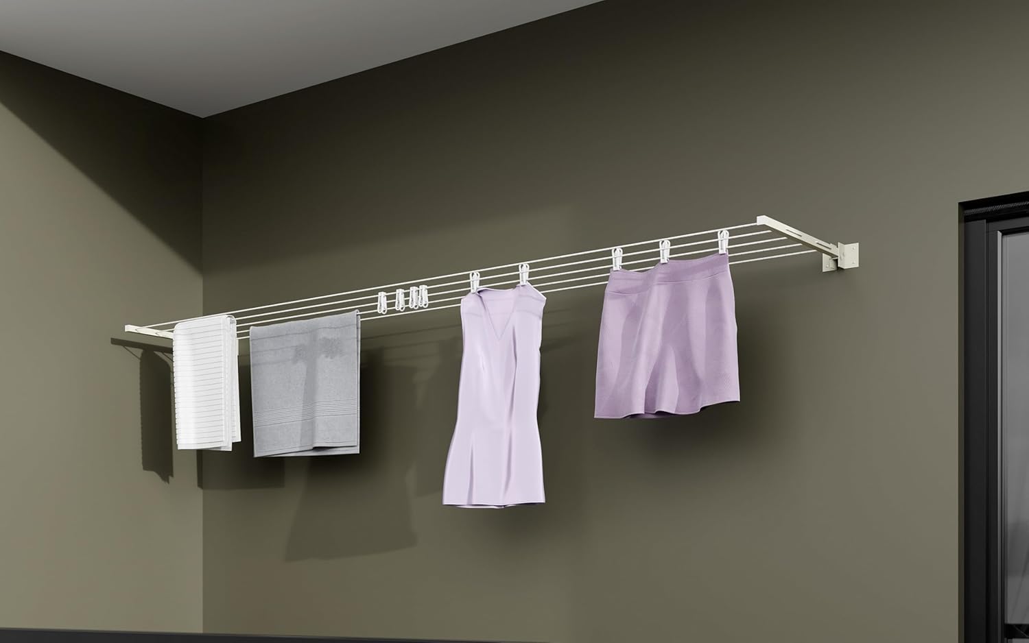 Customers appreciate the drying rack’s build quality, noting its premium metal construction and durability for all-weather use. Moreover, the product offers excellent value for money, is easy to install, and works well in small spaces like balconies and bathrooms. Additionally, customers like its foldable design that creates space when not in use, its stainless steel rods, and its capacity to hold decent amounts of weight.