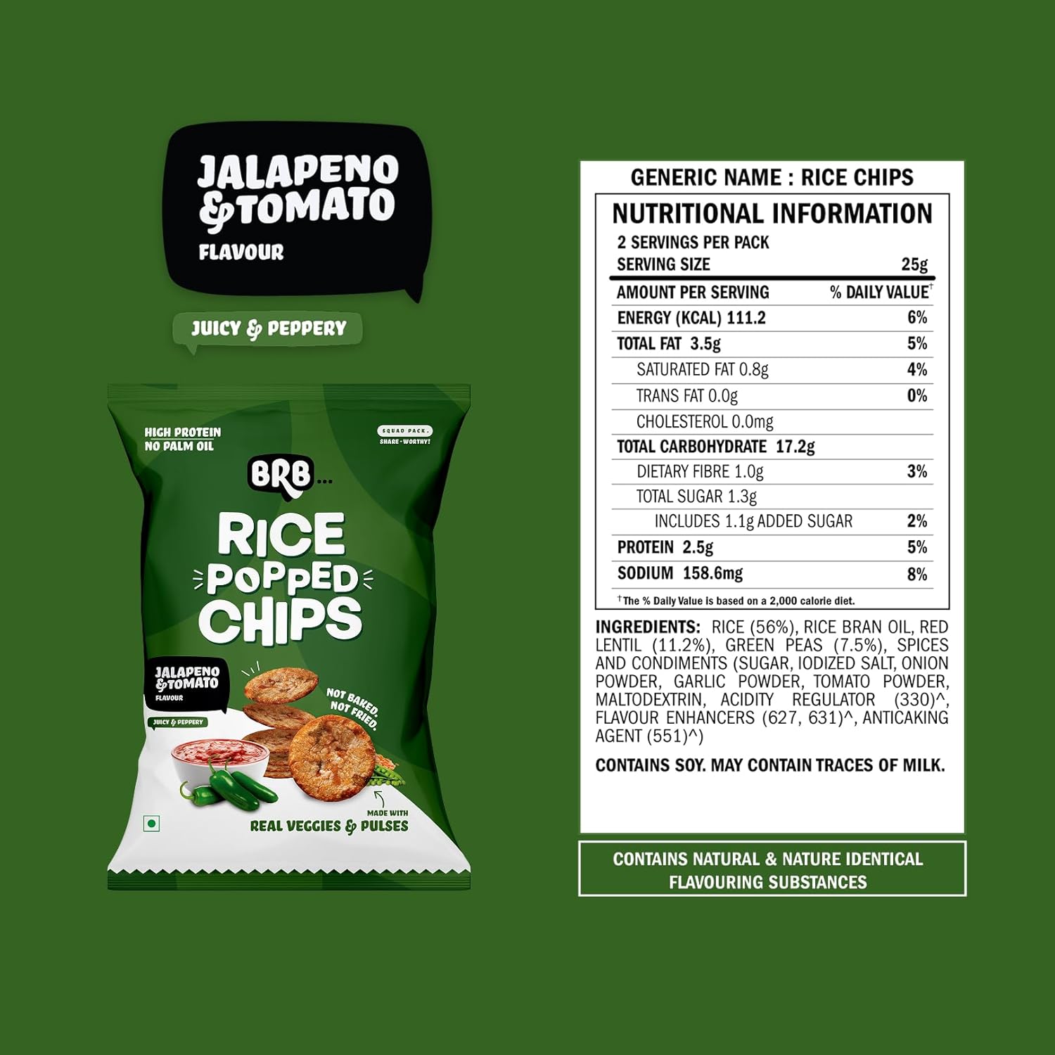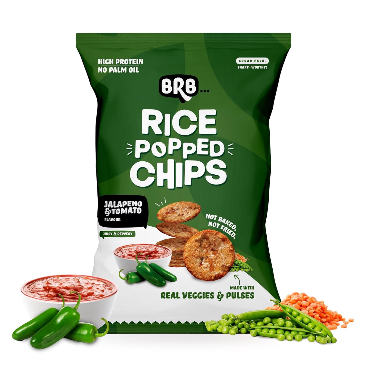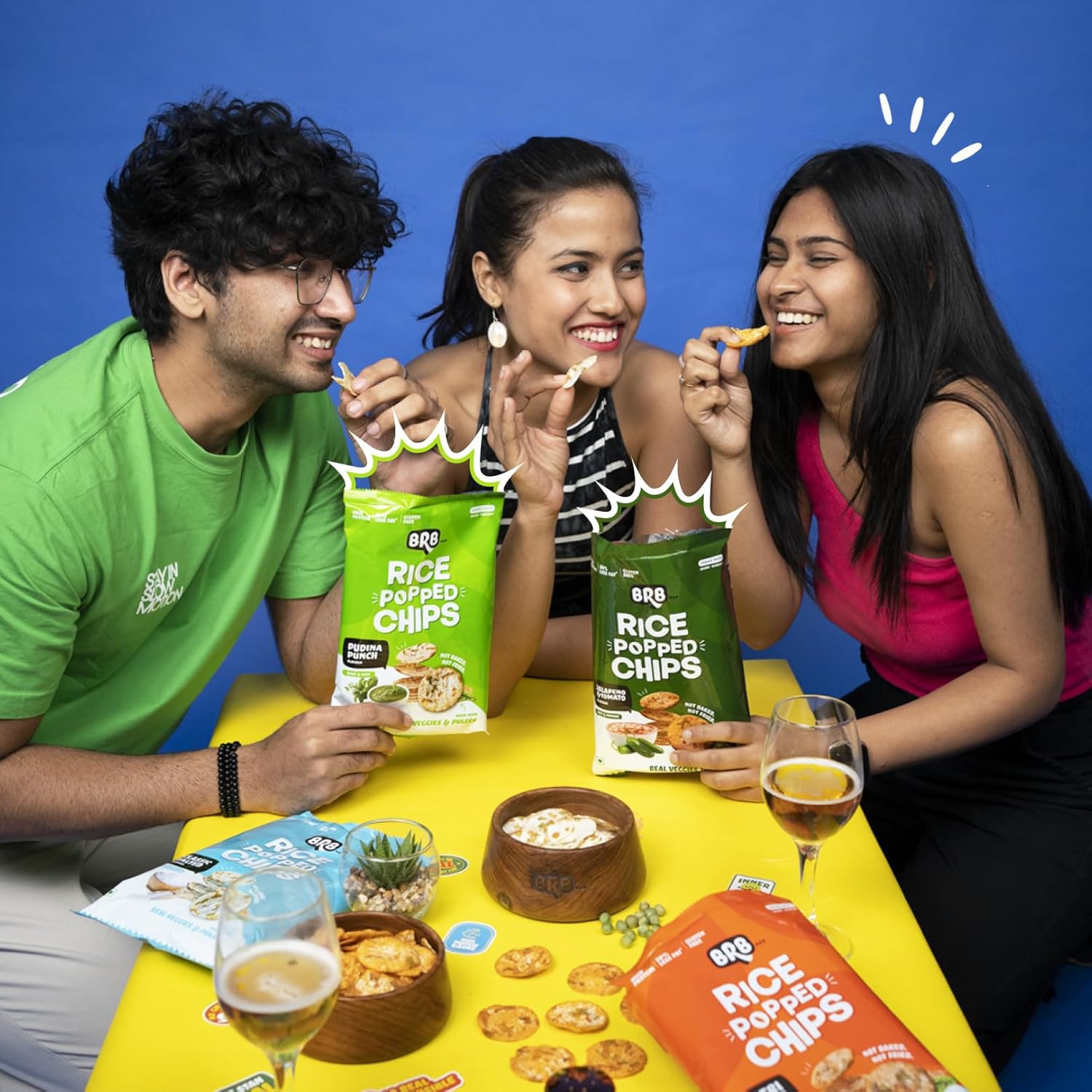 Ditch the dull and say hello to BRB’s Rice Popped Chips! Made with real veggies and pulses, these chips are not fried or baked, but popped for the perfect guilt-free snack. So, why settle for boring chips when you can have the real good with real veggies? Get ready for a flavor explosion with our four amazing tastes – Classic Salted, Peri Peri, Pudina Punch, and Jalapeno & Tomato.